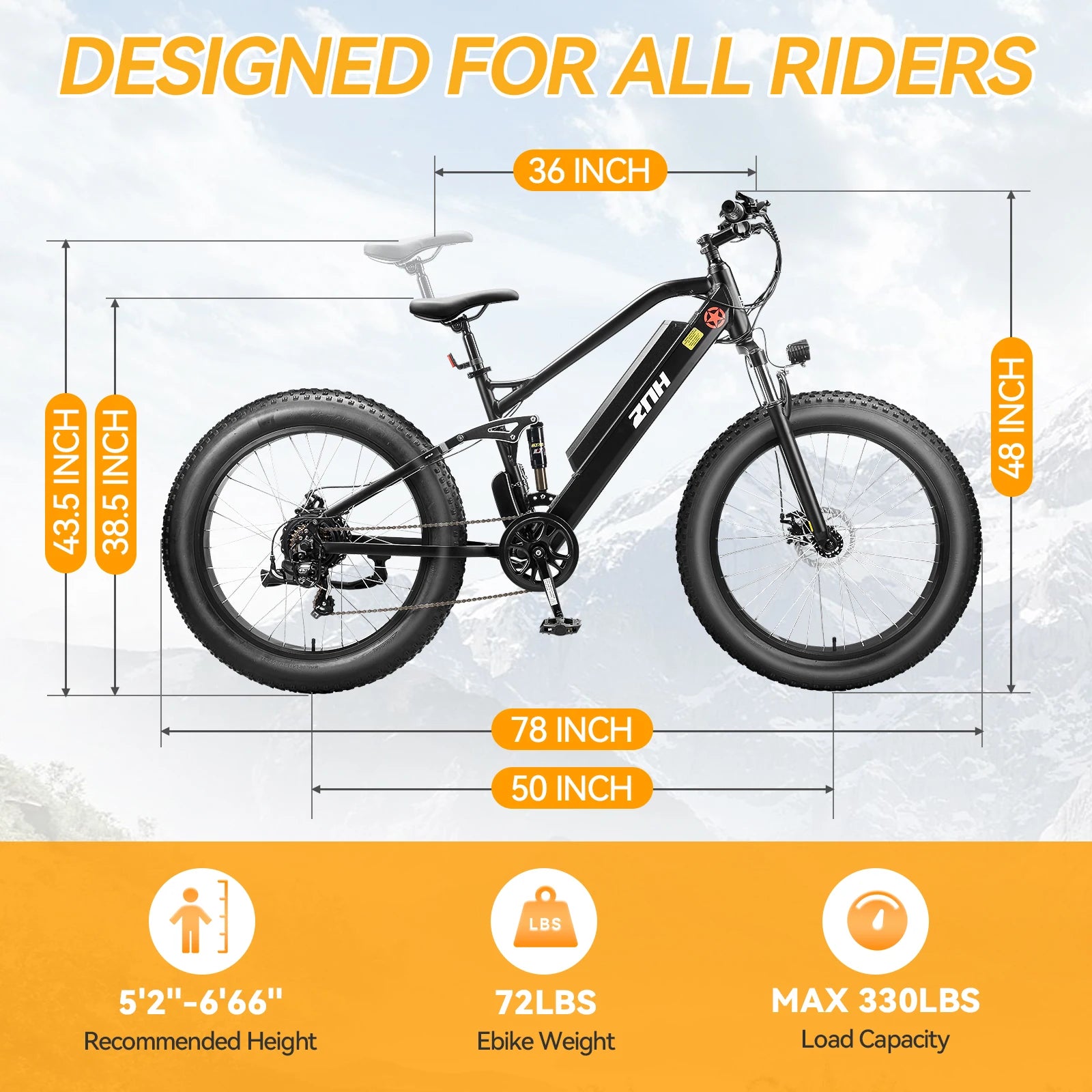 All-Terrain Performance: 26"x4.0" fat tires and a dual suspension system provide excellent grip and shock absorption, delivering a smooth ride on sand, snow, gravel, or pavement.