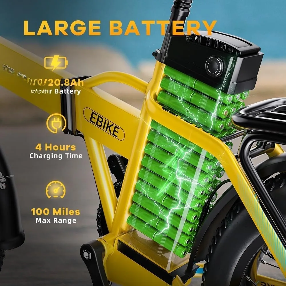 1000W Folding Electric Bike, 48V 20.8AH Large Removable Battery E-Bike, 30+MPH, 80 Miles Max Range, 20" Fat Tire Electric