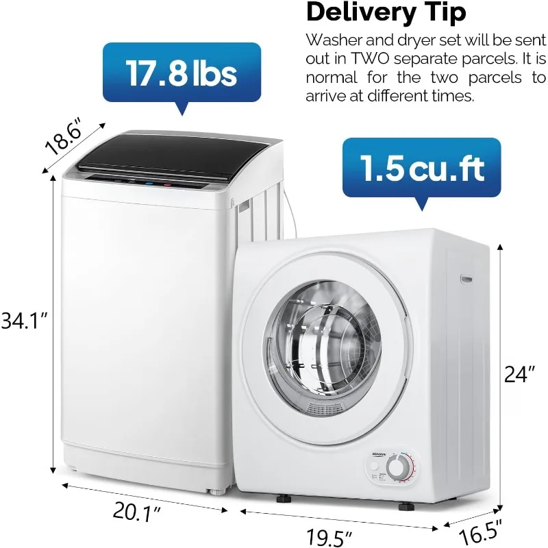 17.8LBS Full Automatic Washing Machine and 1.5CuFt Portable Clothes Dryer Set, Compact Laundry Washer and Dryer Combo