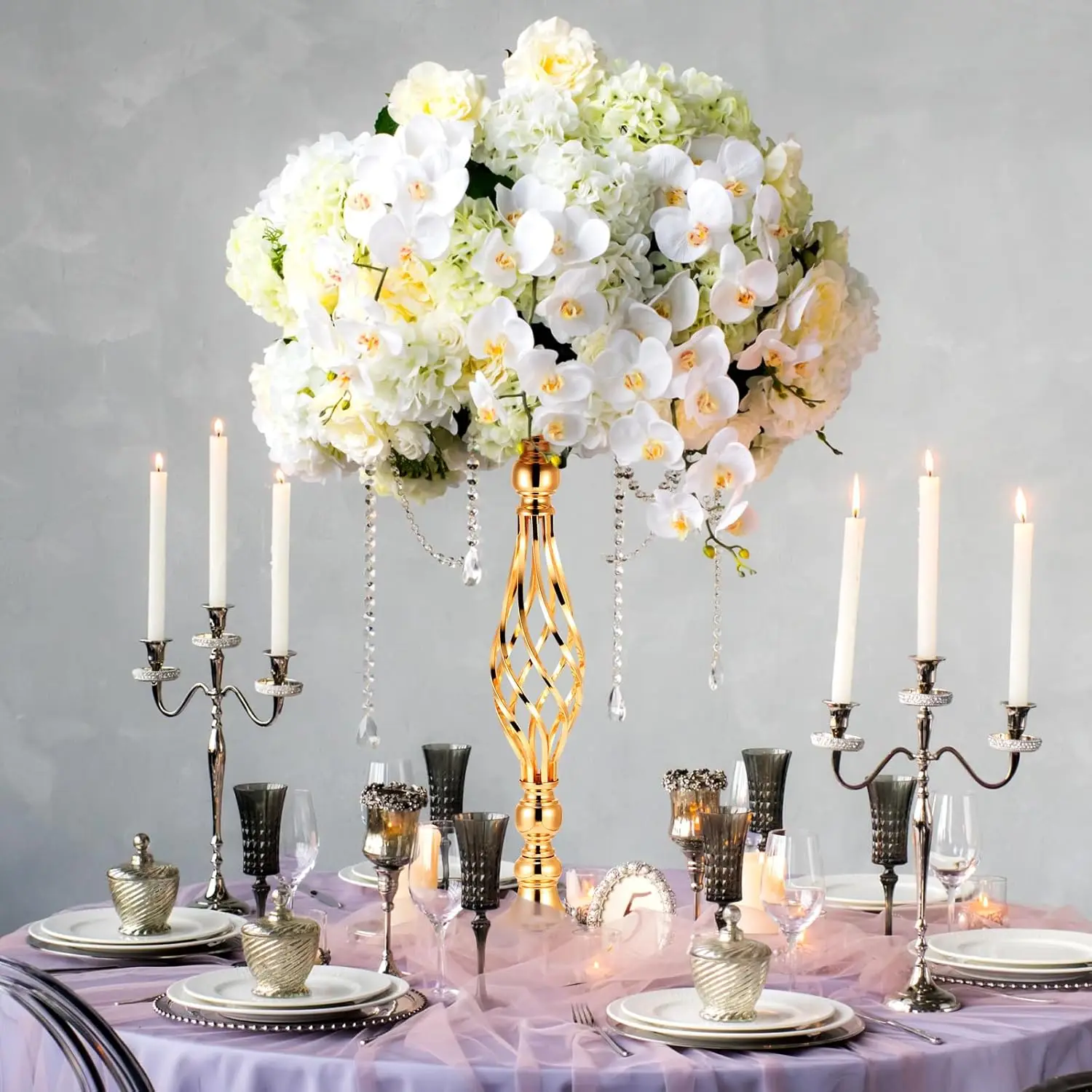 - Easy to assemble: the wedding centerpiece for tables needs to be assembled, which is easy to assemble; The removable design makes it easy to carry, the compact size won't take up much space to store it; Please note that the candles and flowers in the photo are not included