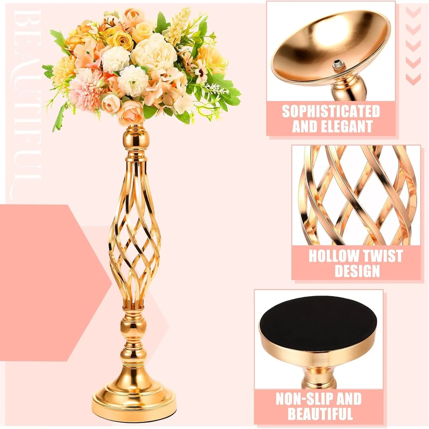 - Elegant Decoration: the wedding flower centerpieces stand features hollow twisted design, beautiful and elegant, you can put flower balls, artificial bouquets, wedding candles and more on the metal flower vase, adding elegance to any festive occasion, it is classic and never goes out of style