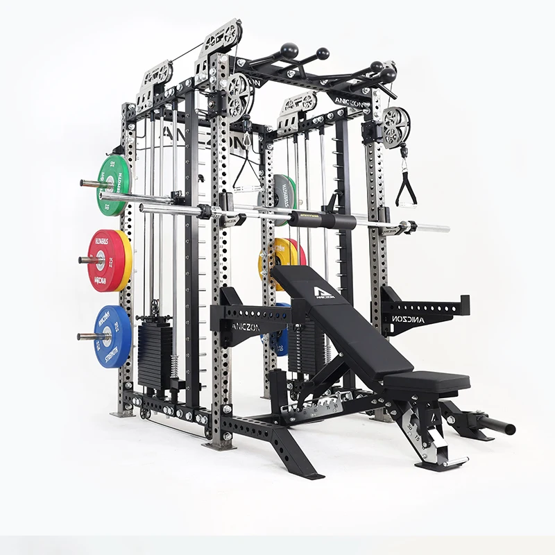 1.The Aniczon M1 commercial power rack combo is a versatile and durable functional trainer smith machine designed for fitness centers and commercial gyms. Its heavy-duty construction ensures maximum stability and longevity, making it an ideal choice for professional workout environments.