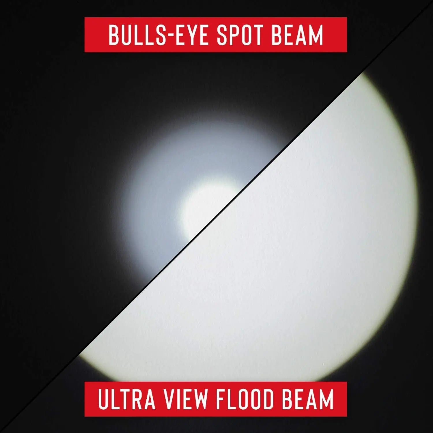 TWIST FOCUSING OPTIC: The simple Twist Focusing system goes from an Ultra View Flood Beam to Bulls-Eye Spot Beam.