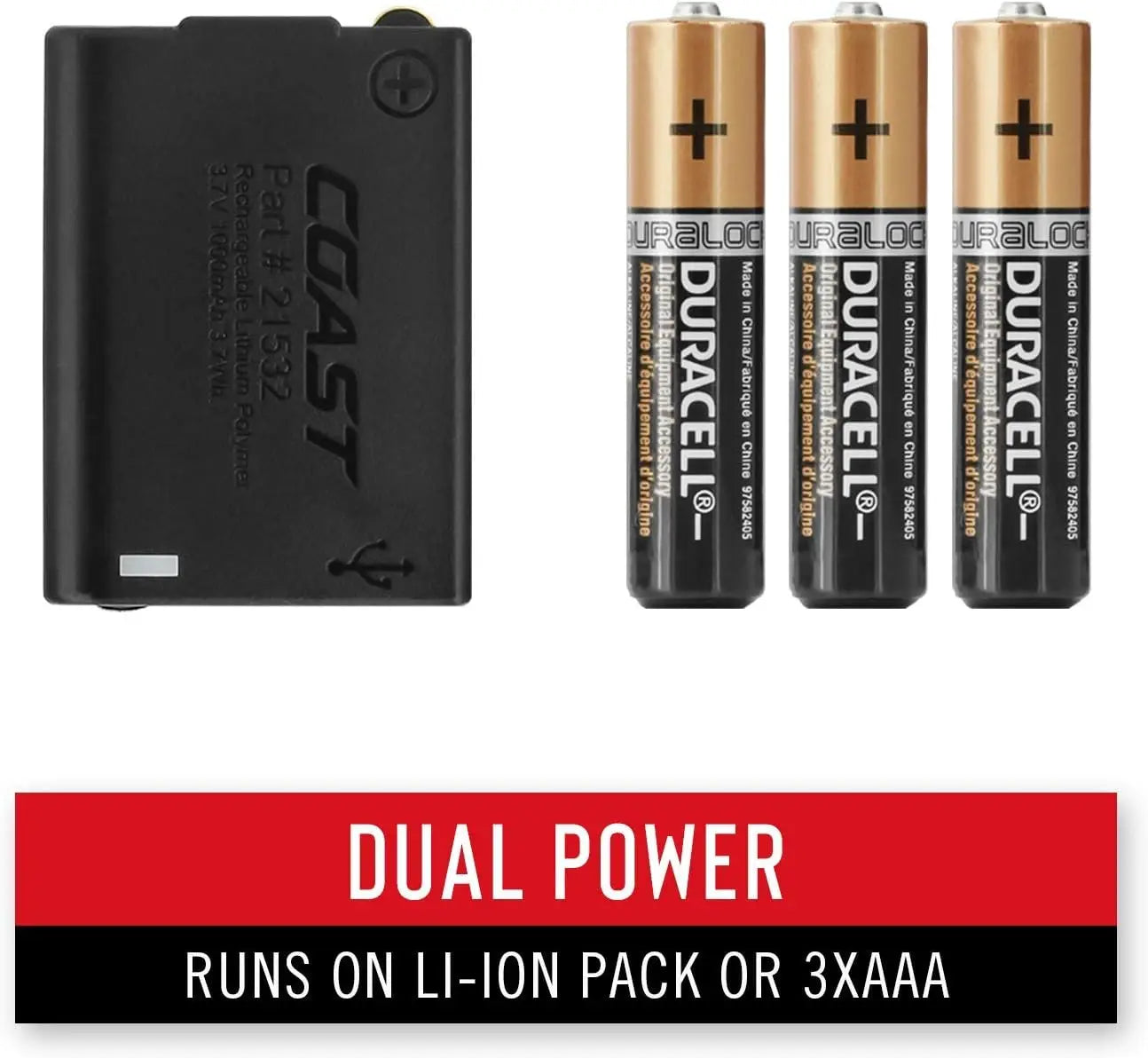 DUAL POWER RECHARGEABLE: Operates on rechargeable and alkaline batteries so you're never without power. Rechargeable batteries can be charged inside or outside of the headlamp with Flex Charge.