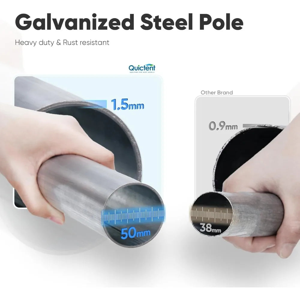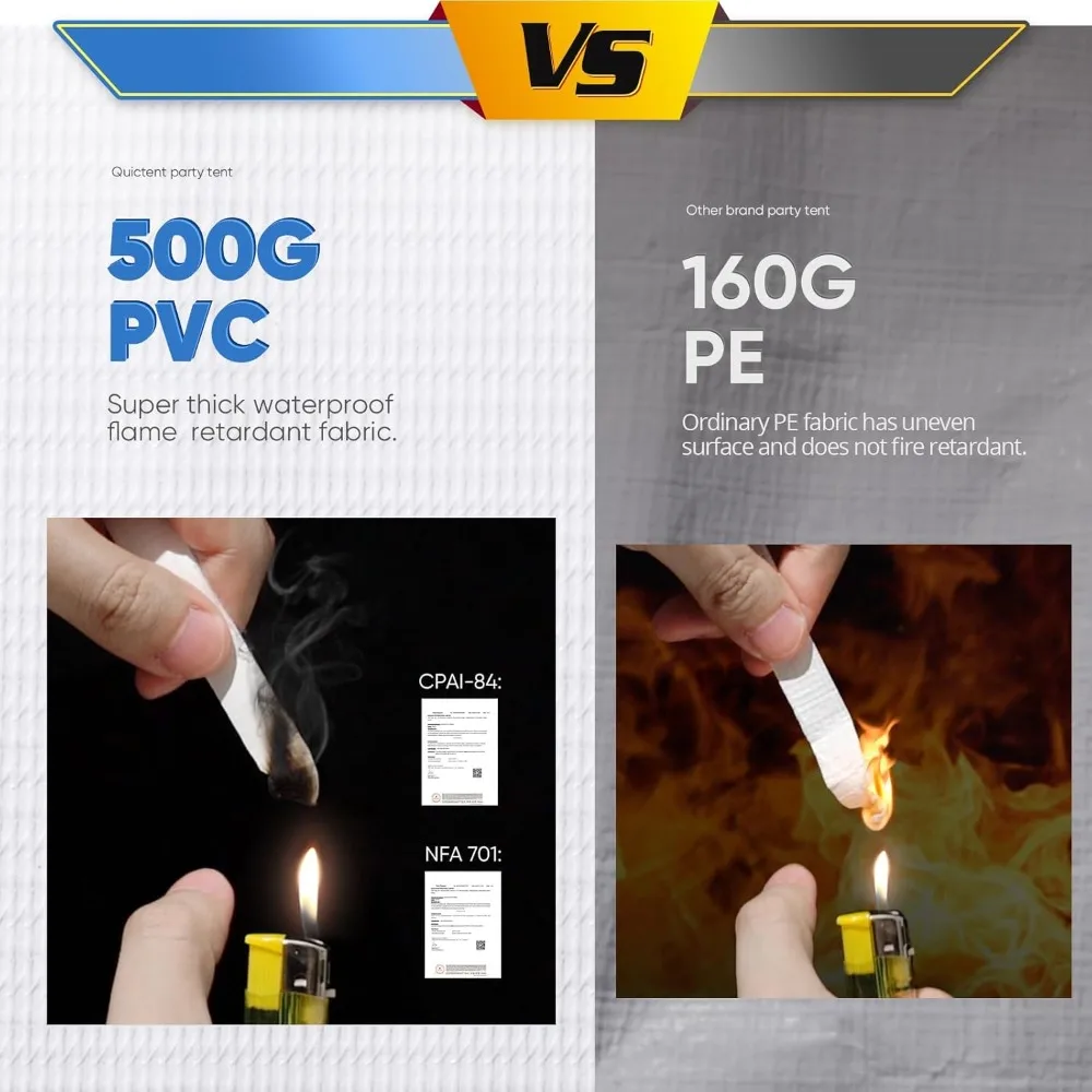 - 【PROFESSIONAL FIRE & WEATHER PROTECTION】Heavy-duty 500g PVC top cover meets CPAI-84 & NFPA 701 Flame Retardant Standards (certified), 100% waterproof & UV-resistant. 3 Reinforced 2" Galvanized Steel Poles (1.5mm thick) + 22 Heavy-Duty Ground Stakes & Wind Ropes ensure stability in harsh weather.