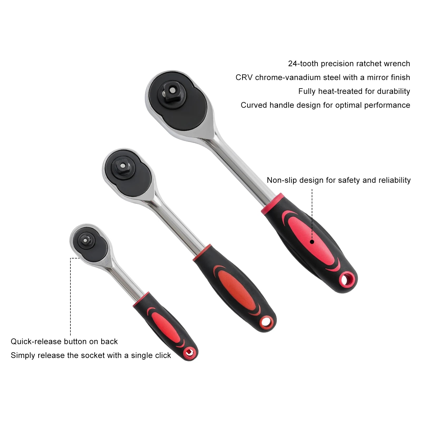This 216-piece socket wrench set combines multiple functions into one, covering a wide range of sizes and accessories, making it suitable for various maintenance scenarios. Its exquisite craftsmanship and durable materials ensure precise and efficient operation every time, making it the ideal choice for professional technicians and DIY enthusiasts.