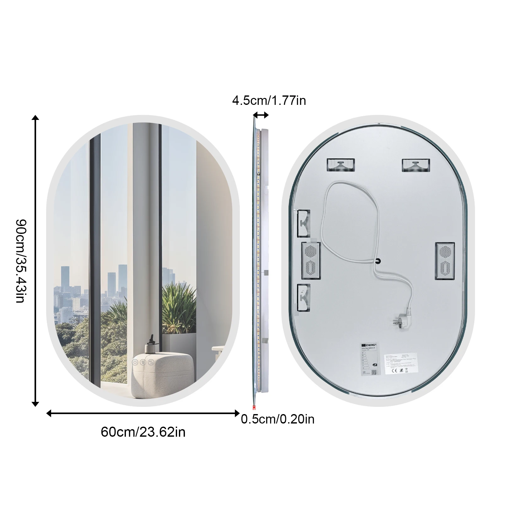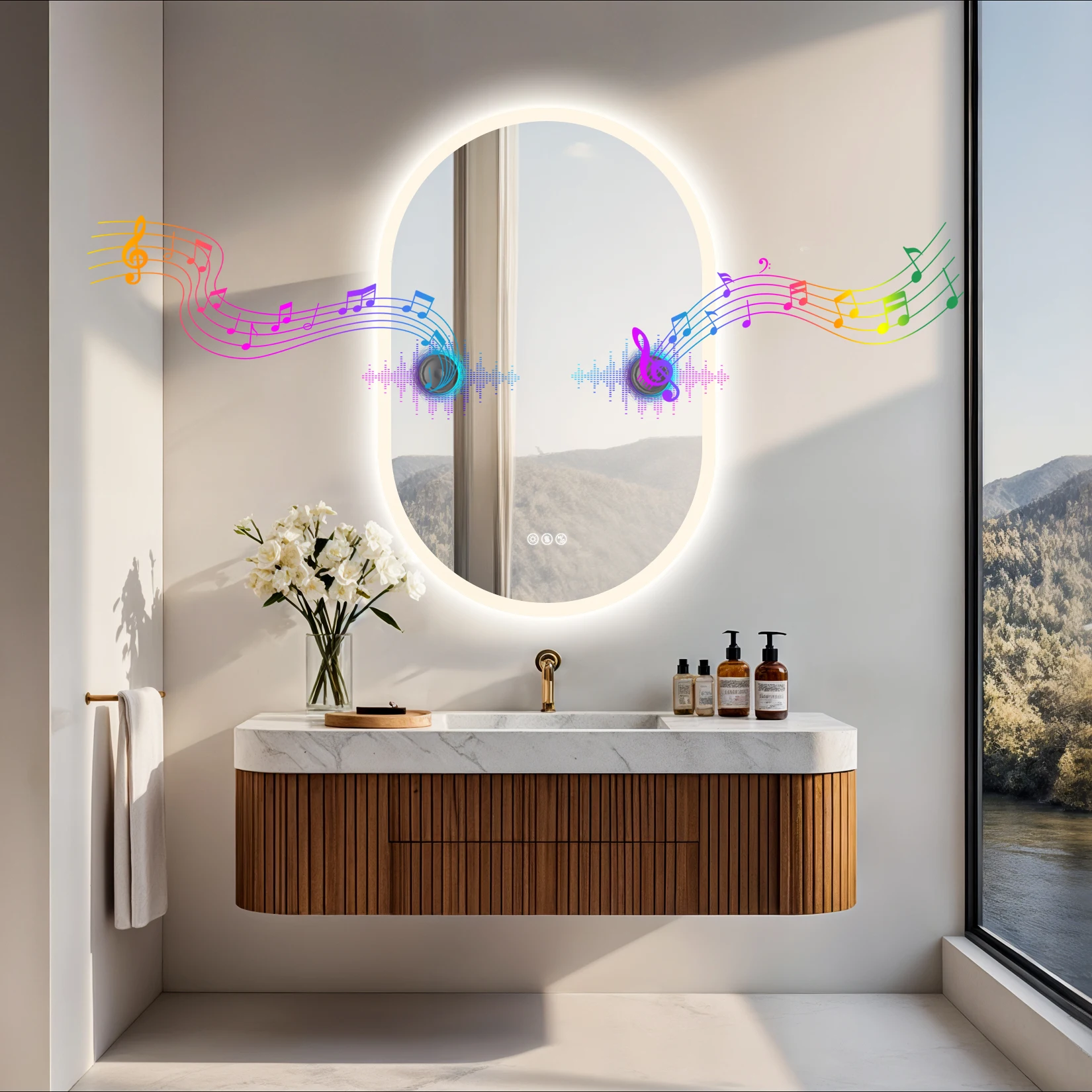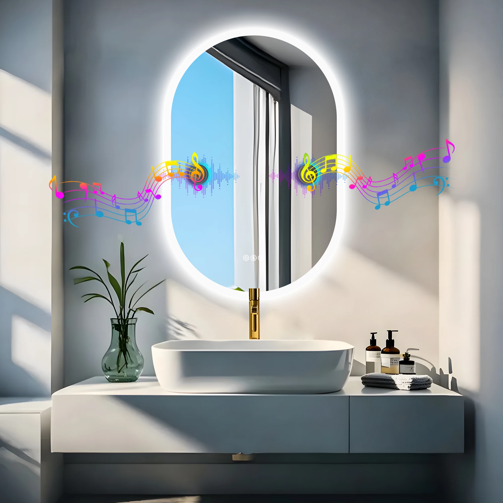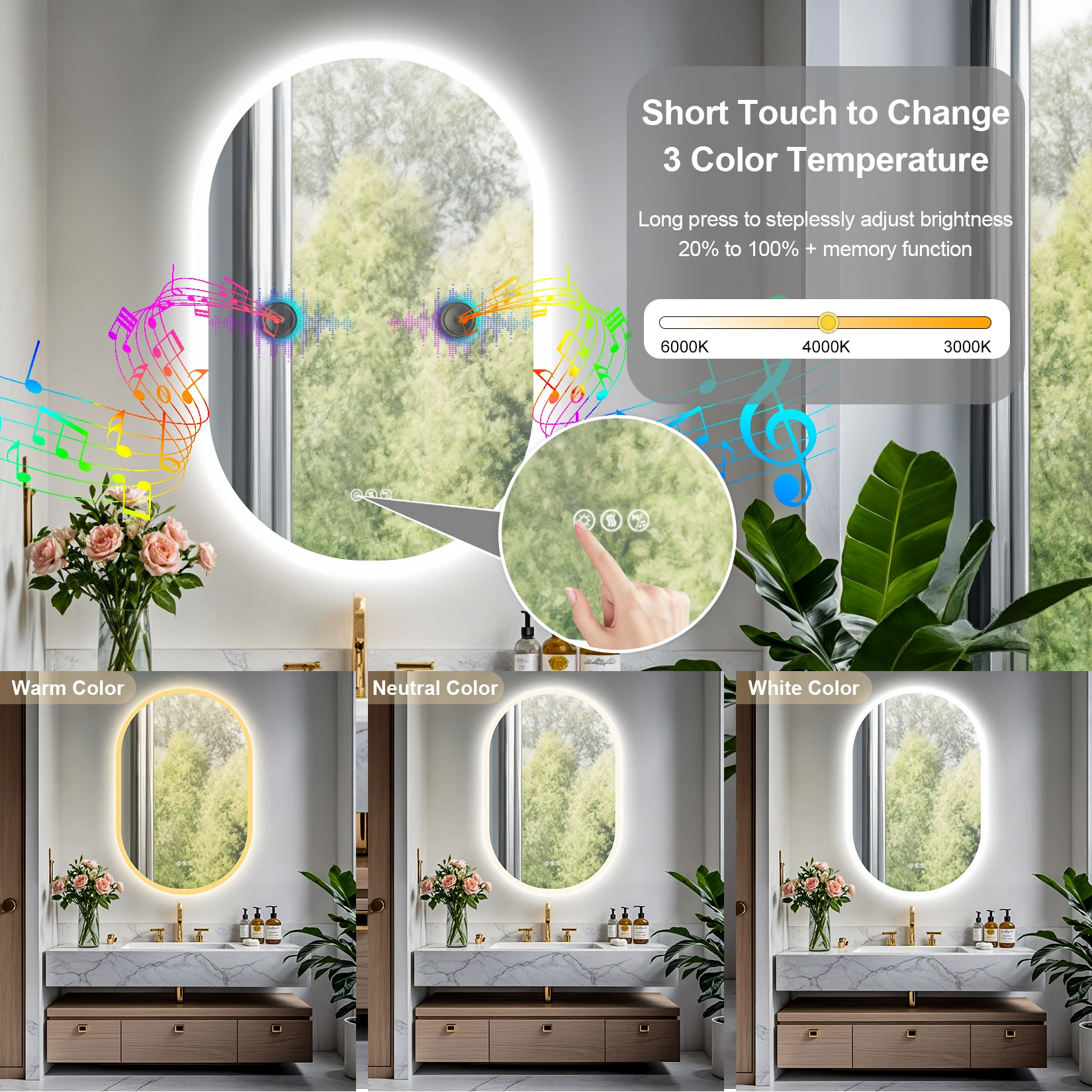24x35 Oval LED Bathroom Mirror with Lights, Anti-Fog, Bluetooth Speaker, 3 Colors Temperature & Dimmable, Lighted Mirrors