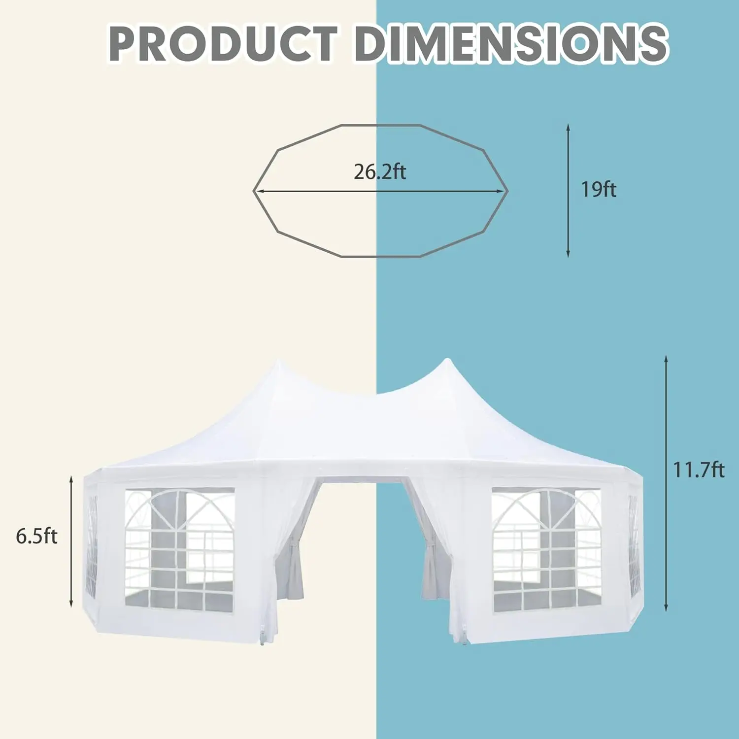 26x19ft Party Tent, White Wedding Tent, Decagonal Heavy Duty Canopy with 8 Removable Sidewalls, 8 Church Windows