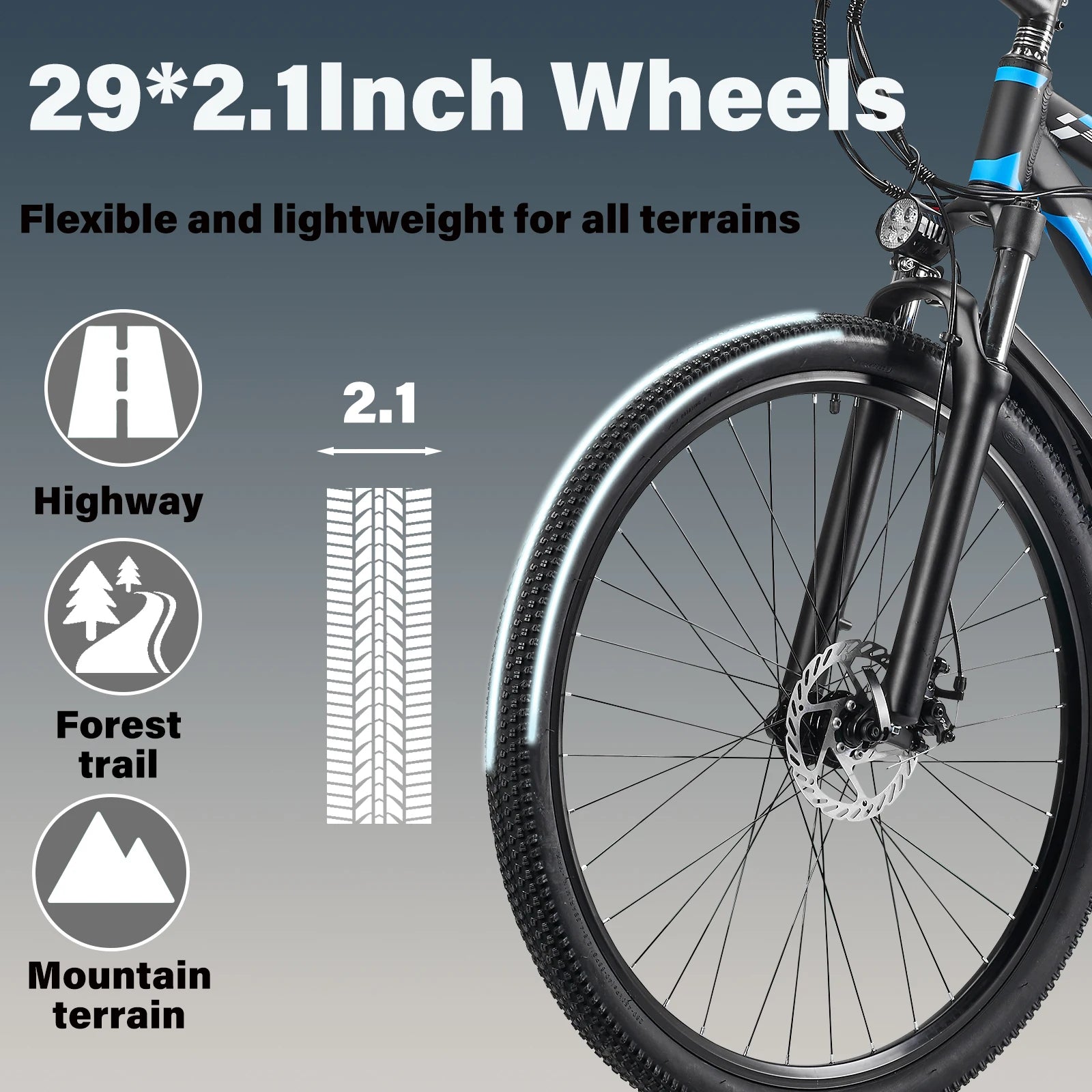 29 Inch Adult Commuter Electric Bike,750W Peak 1000W Motor 48V 17.5AH Removable Battery ,top speed of 34MPH 21-Speed E-Bike