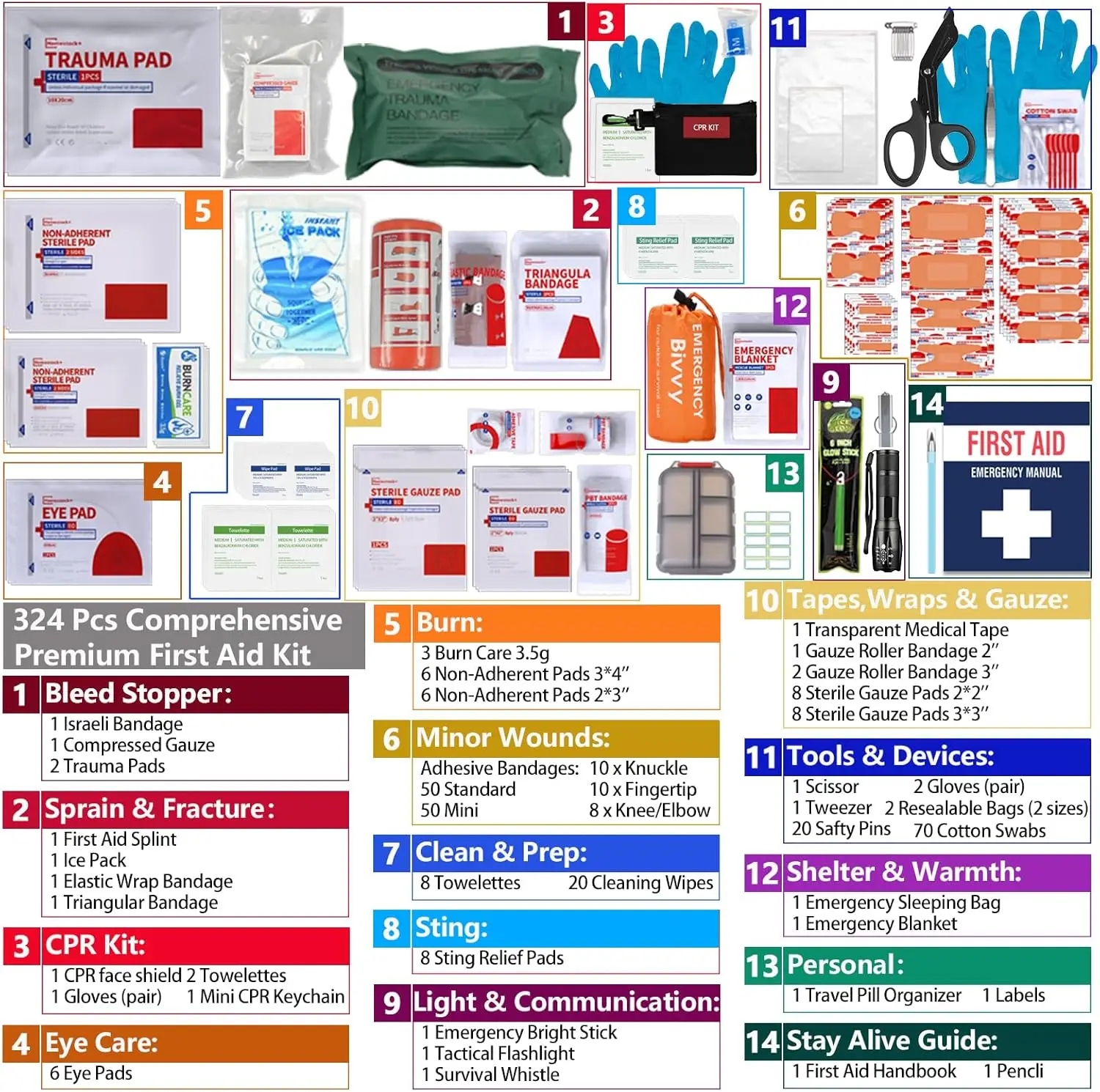 324-Piece Comprehensive First Aid Kit with Labelled Compartments for Car, Home, Office, Camping & Travel