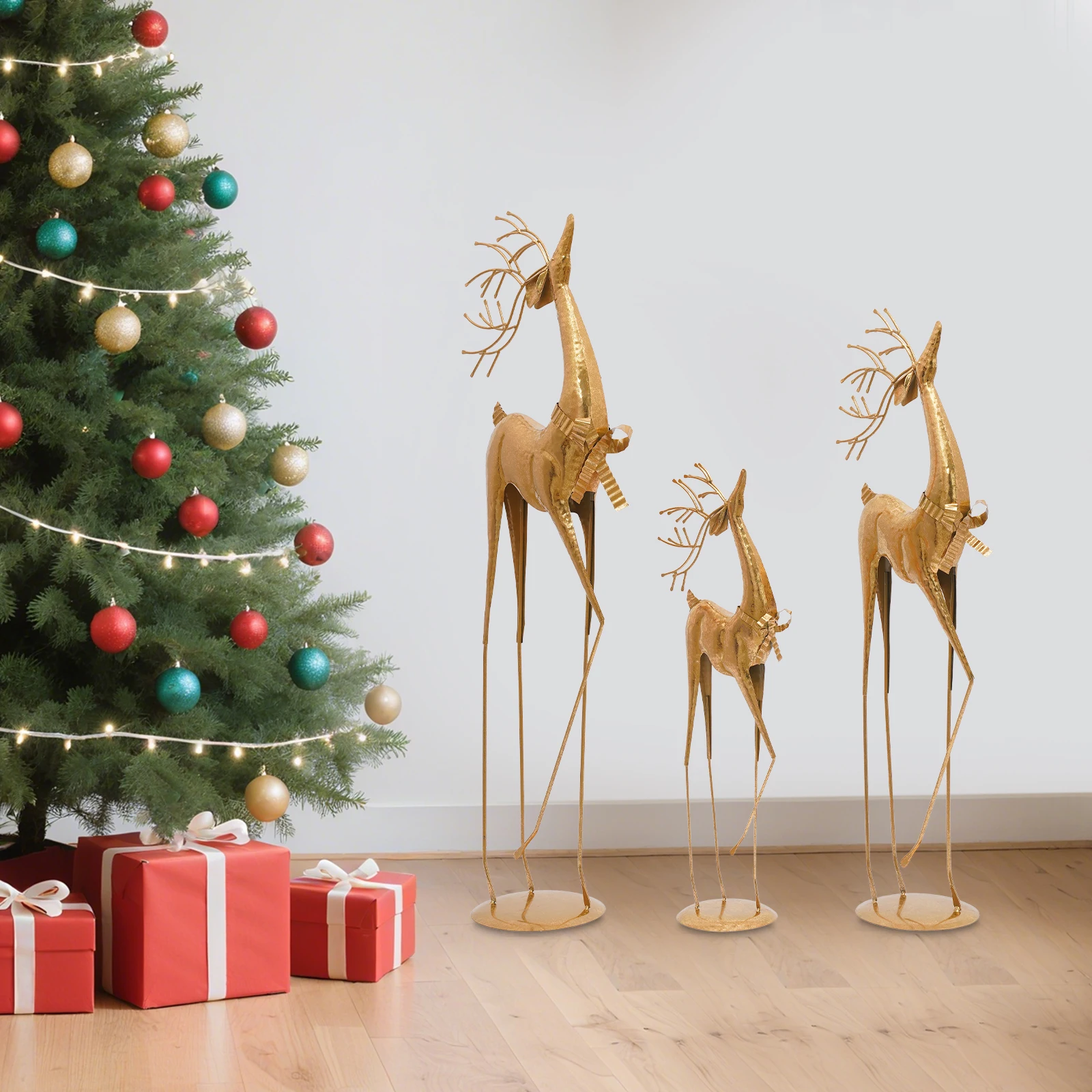 3Pcs Gold Iron House Studio Reindeer Statue, Christmas Decoration Indoor Reindeer Statue For Shop Windows, Stores, Party, Office
