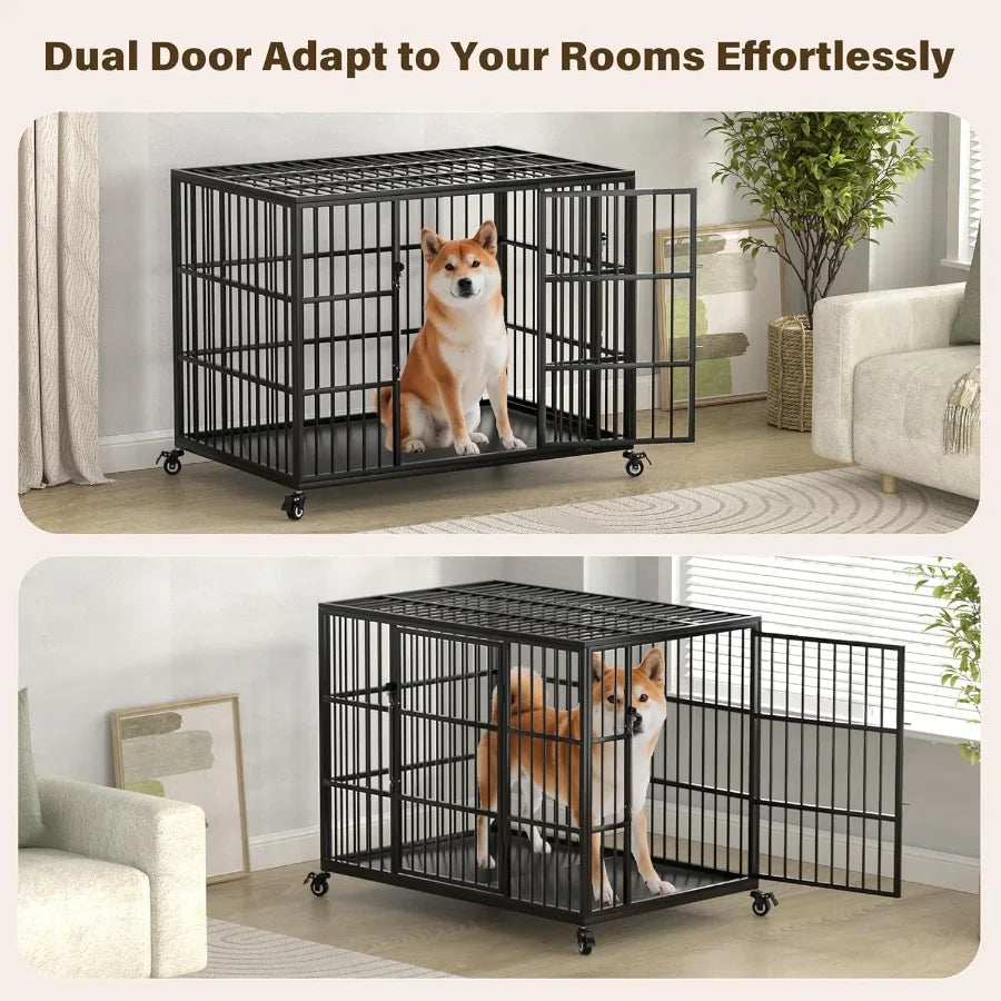 42 Inch Heavy Duty Dog Crate for Large and Medium Dogs with Self-Locking Latch Escape-Proof Steel Kennel Indoor XL Large Double