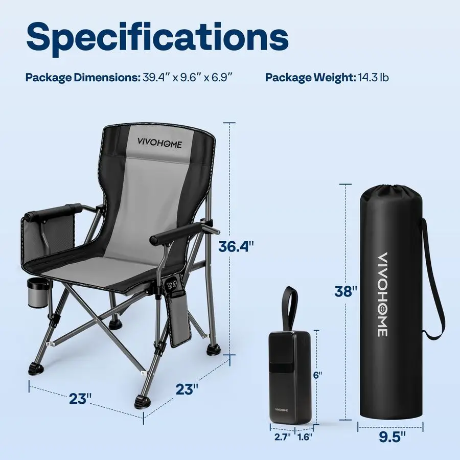 45W Padded Heating Camping Chair with 27000mAh Power Bank, Heated Portable Folding Lawn Chair for Outdoor Sports, 3 Levels of He
