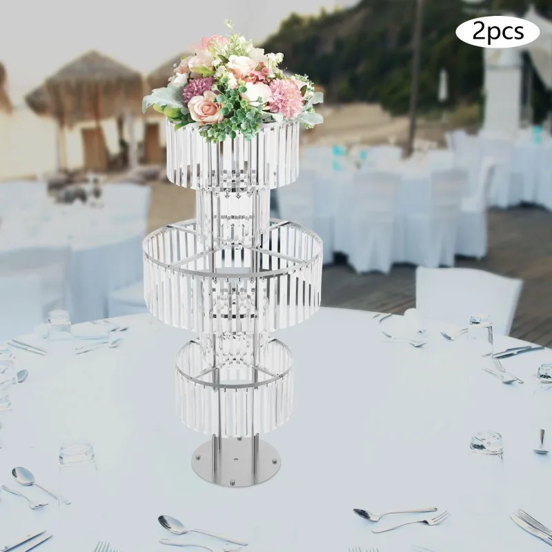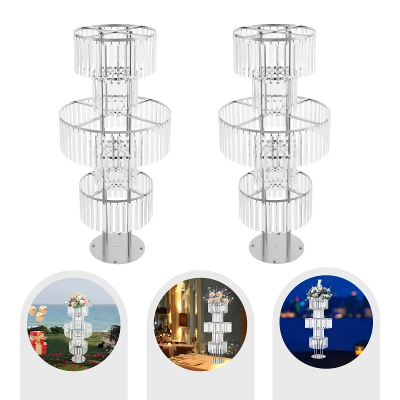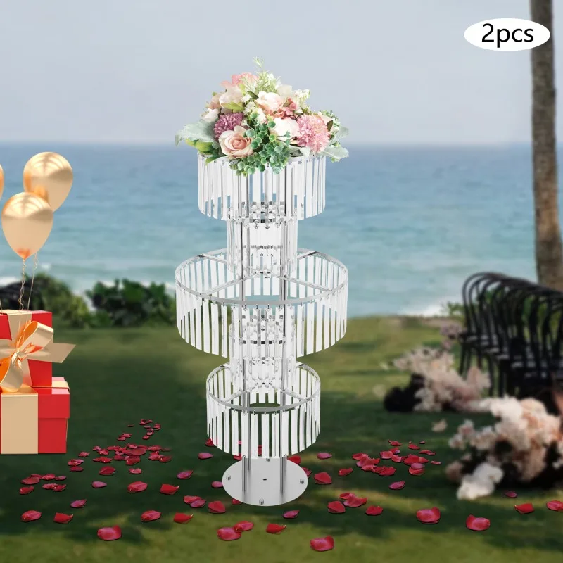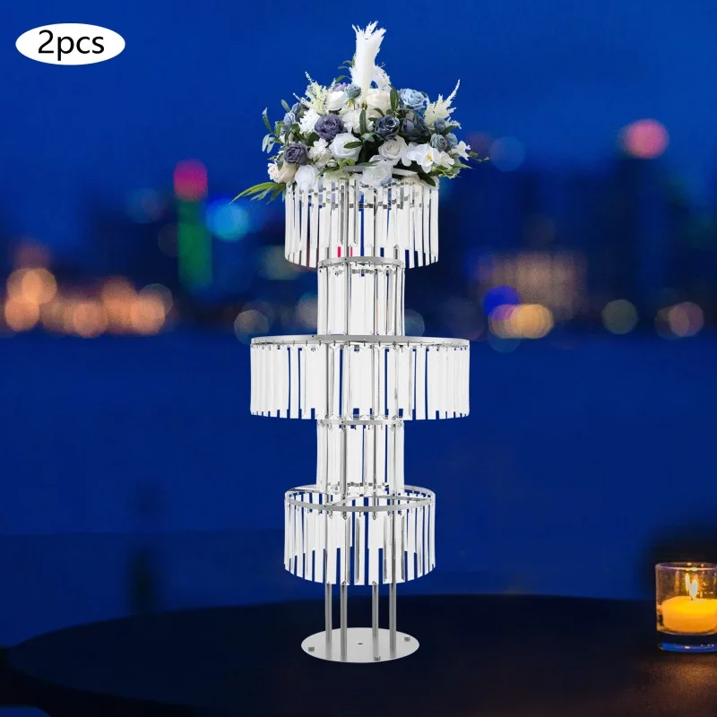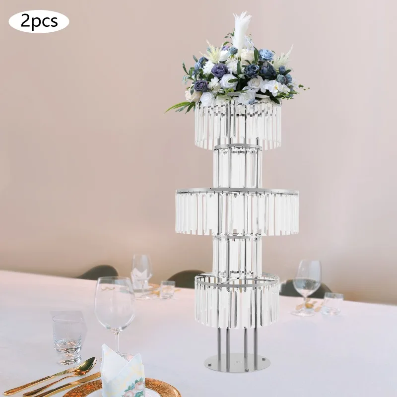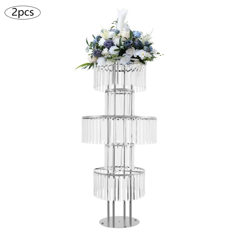 5-Tier Flower Stand, Crystal Vases, Set of 2 Iron Acrylic Clear Silver Wedding Party Home Decor Floor Tabletop Decor