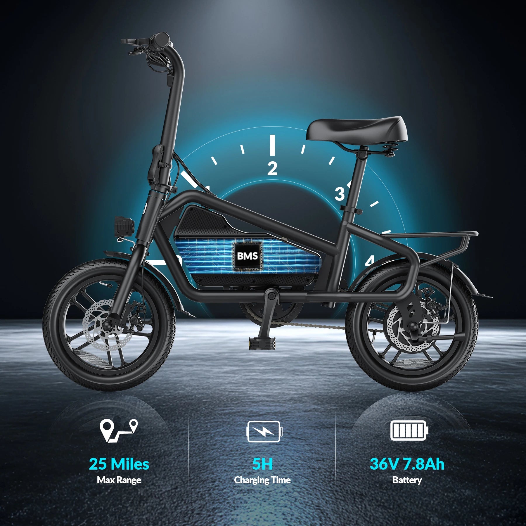 Equipped with a robust 650W peak power motor, this electric bike delivers strong acceleration and supports speeds up to 20MPH, making it ideal for urban commuting and tackling steep inclines with ease.