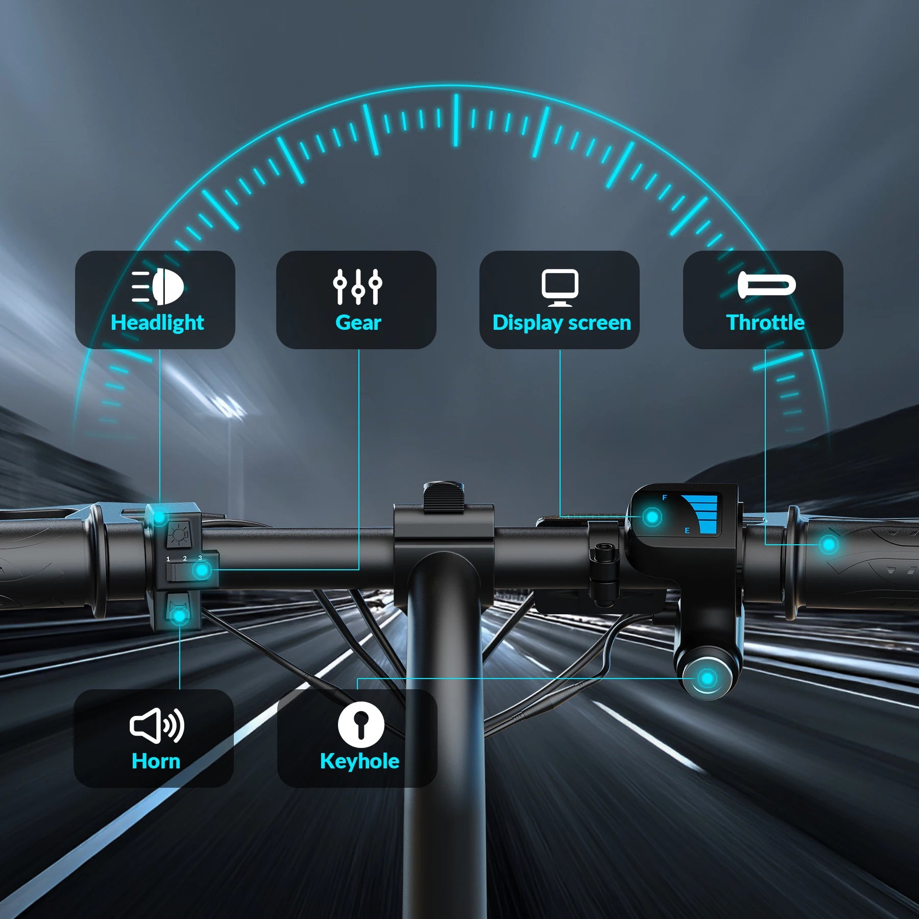 Features dual disc brakes combined with an electronic braking system (E-braking) for reliable stopping power and enhanced safety, ensuring stable control in various road conditions.