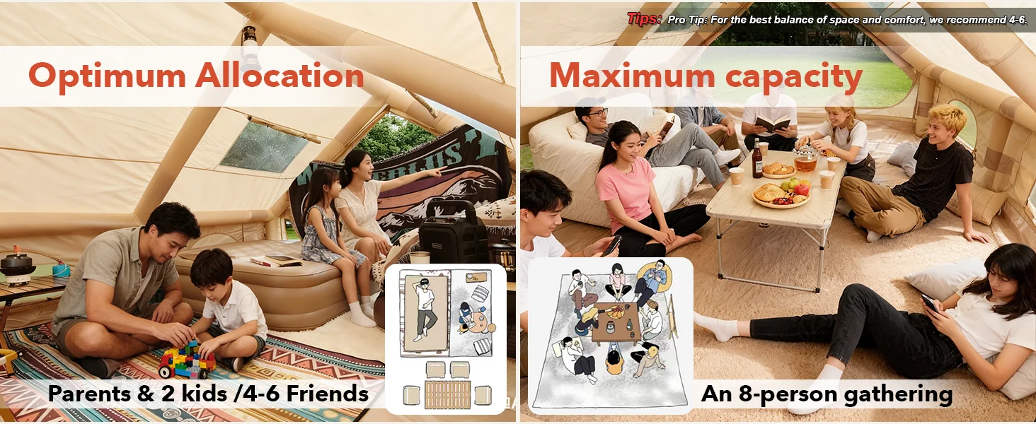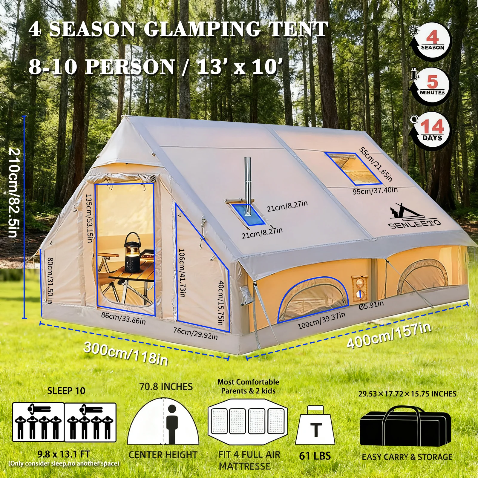 8-10 Person Christmas Inflatable Tent for Camping, Blow Up Tent with Waterproof Canopy,Glamping Inflatable Tent with Stove Jack