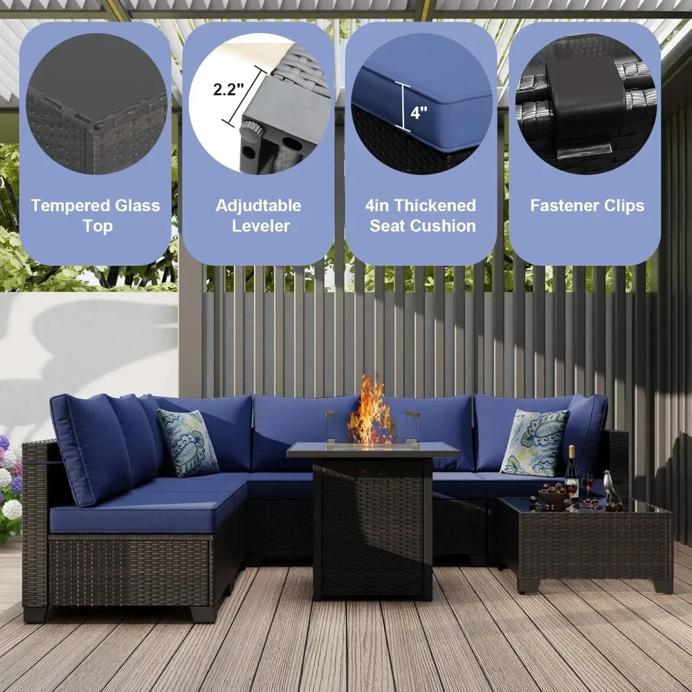 8-Piece Outdoor Patio Furniture Set with Fire Pit Table 28' Wicker Sectional Sofa Conversation Set with Cushions for Garden