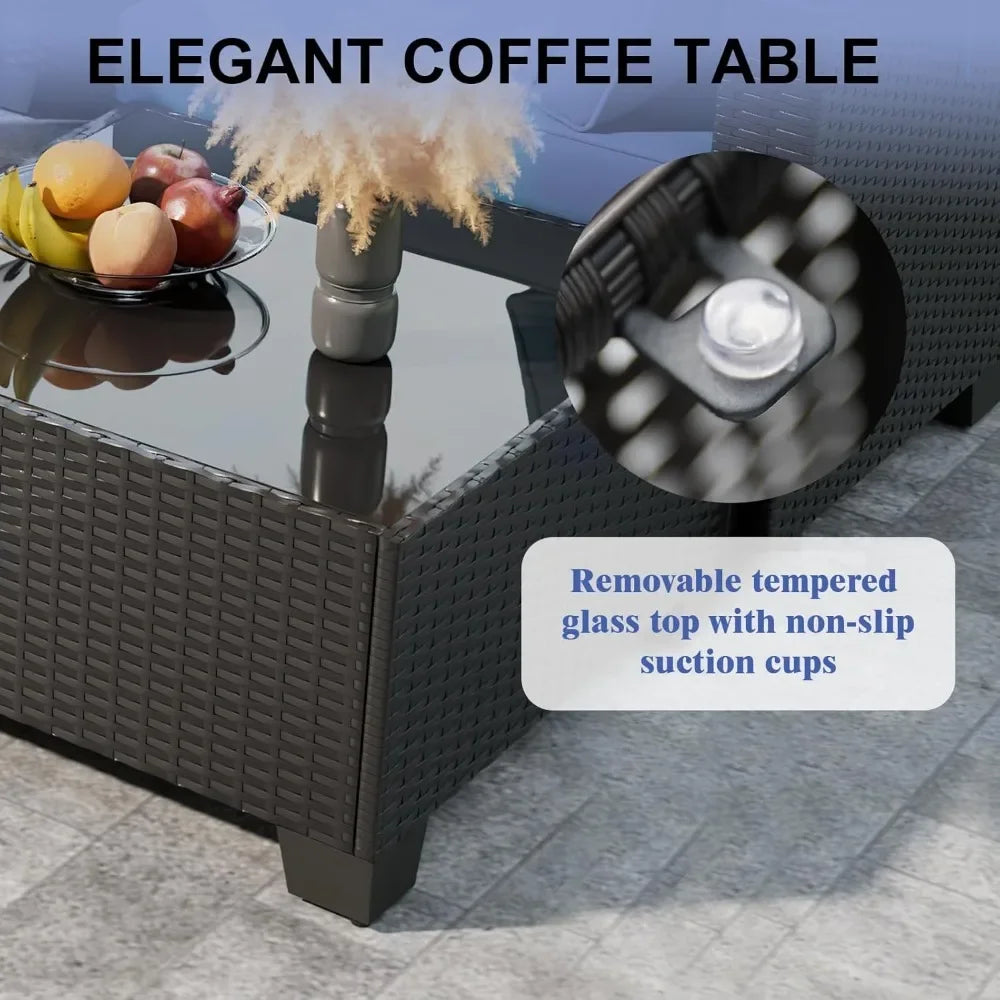 【Built for All-Weather】Crafted with a sturdy steel frame and resilient PE wicker, the set is built to withstand the sun and rain, maintaining its beauty and reliability season after season