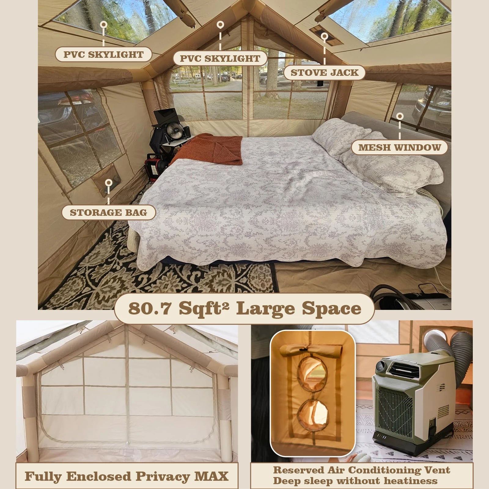 80.7 Square Feet Inflatable Tent with Air Conditioning Vent,4 Season Glamping Blow up Tent for Camping,Waterproof Oxford Fabric