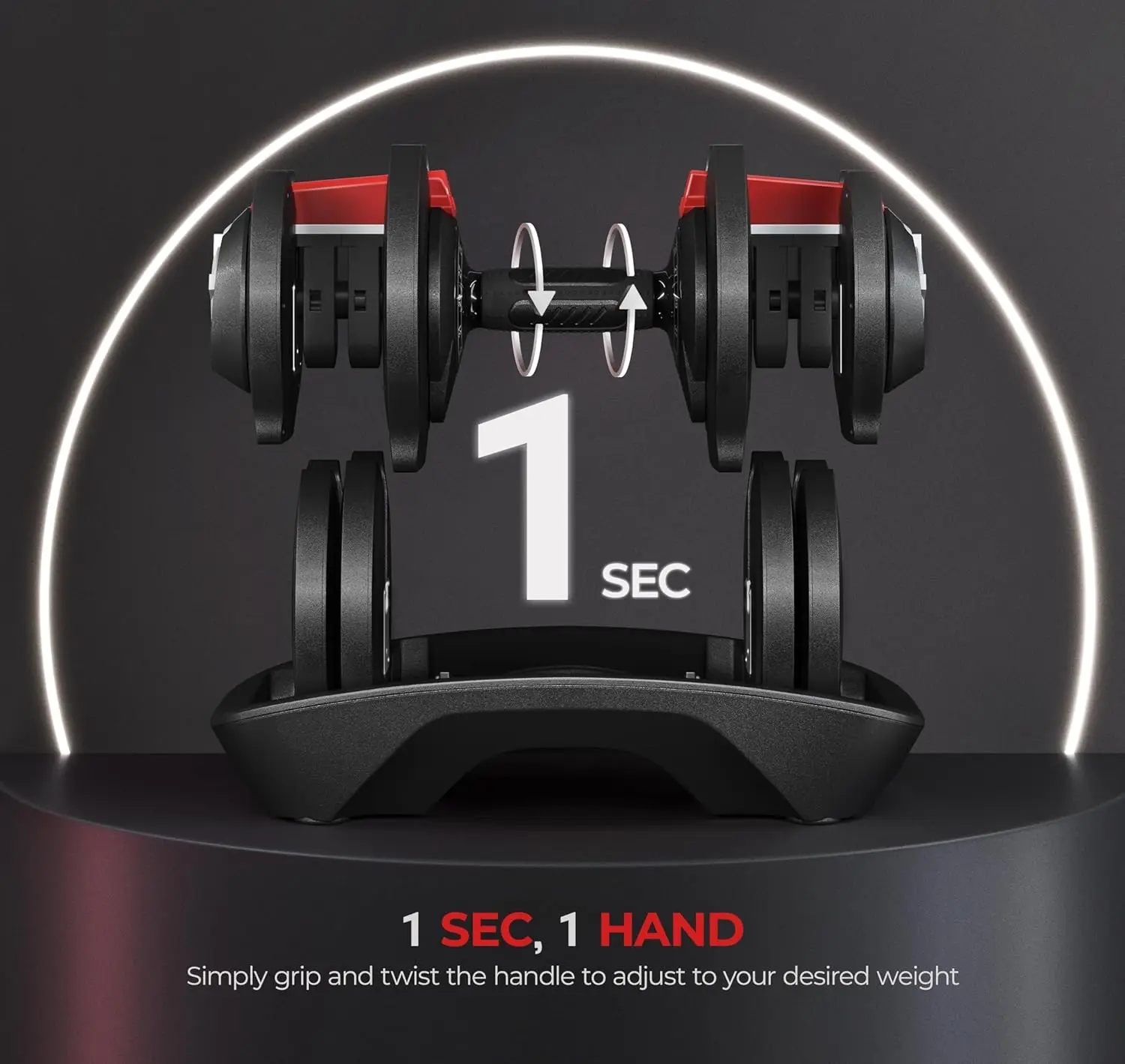 Adjustable Dumbbell Set 28-90LBS with Anti-Slip Handle and Tray for Home Gym Strength Training Equipment