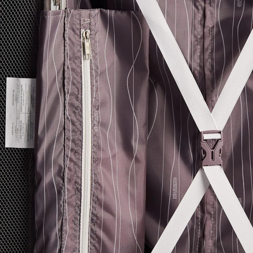 Here's a rewritten product description based on the provided information: This suitcase features a book opening case with a mesh divider and cross straps in the main compartment, ensuring your belongings stay organized. It also includes a zipped pocket for added privacy. The single spinner wheels provide a smooth and stylish ride, making it easy to maneuver. The suitcase can expand by 1.5 inches for additional packing capacity. The push-button locking handles are designed for easy maneuverability when extended and can be neatly stored inside the suitcase when not in use.