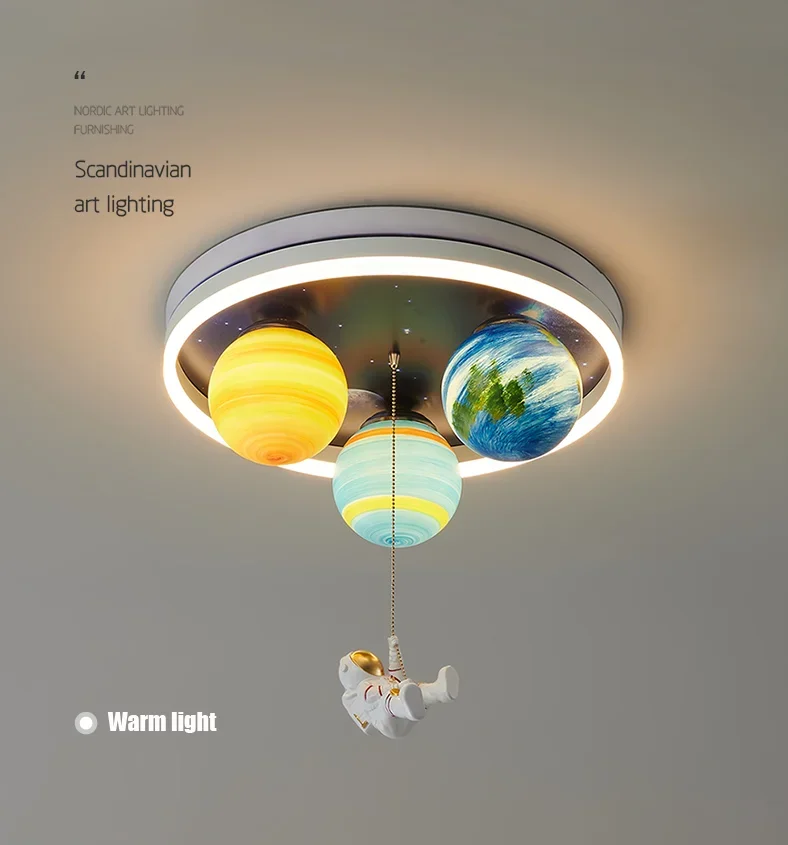 Astronaut Planet Creative Circular The Outer Space Led Ceiling Light Children's Bedroom Decorative Boys Girls Dream Universe