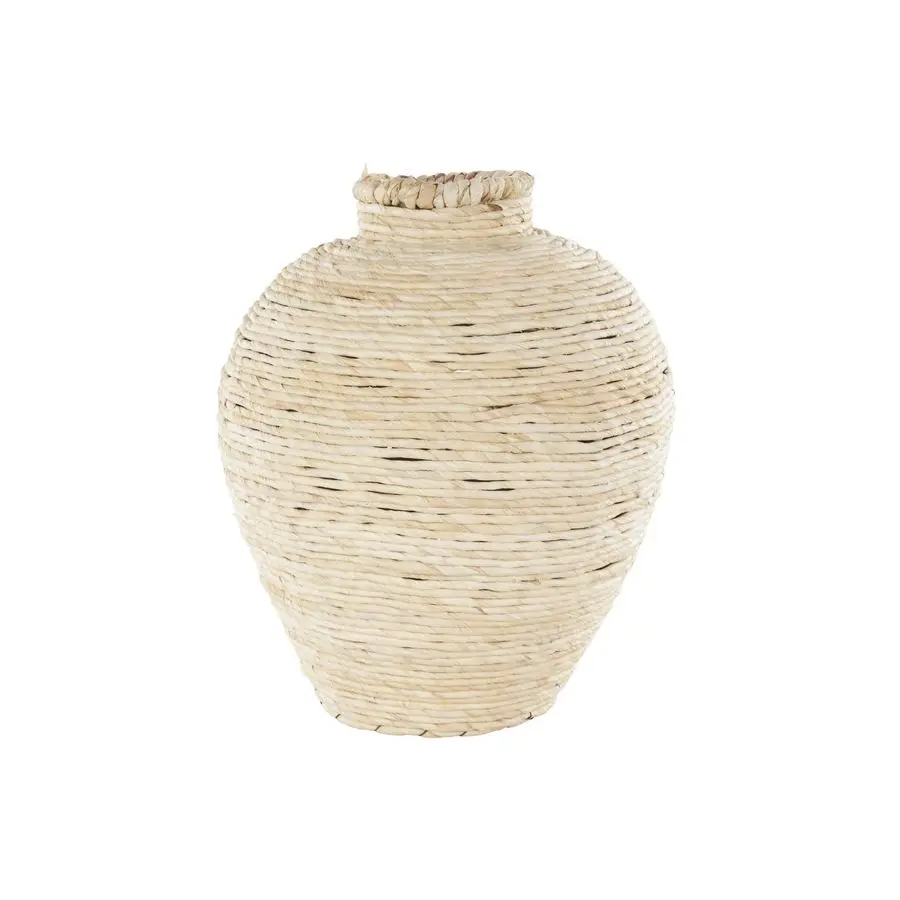 BAMBOO WOOD VASE FOR CENTERPIECE Made from highquality metal and corn rope, the cream decorative vase exudes durability