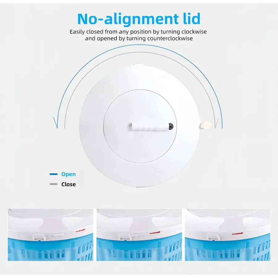 Manual Washing Machine and Dryer Combo is equipped with a noalignment lid, easily closed from any position by turning clockwise and opened by turning counterclockwise