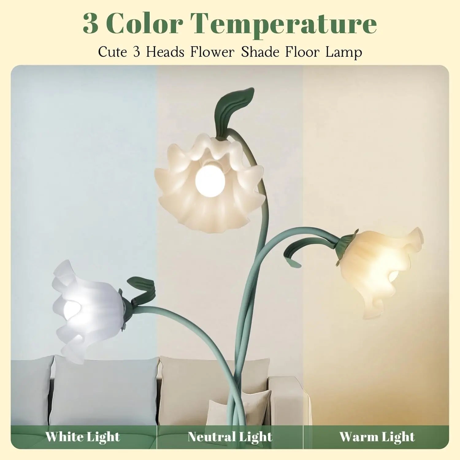 Cute Flower Standing Lamp with Flexible Gooseneck, 3-Temperature LED Floor Lamp for Bedroom or Living Room (Green)