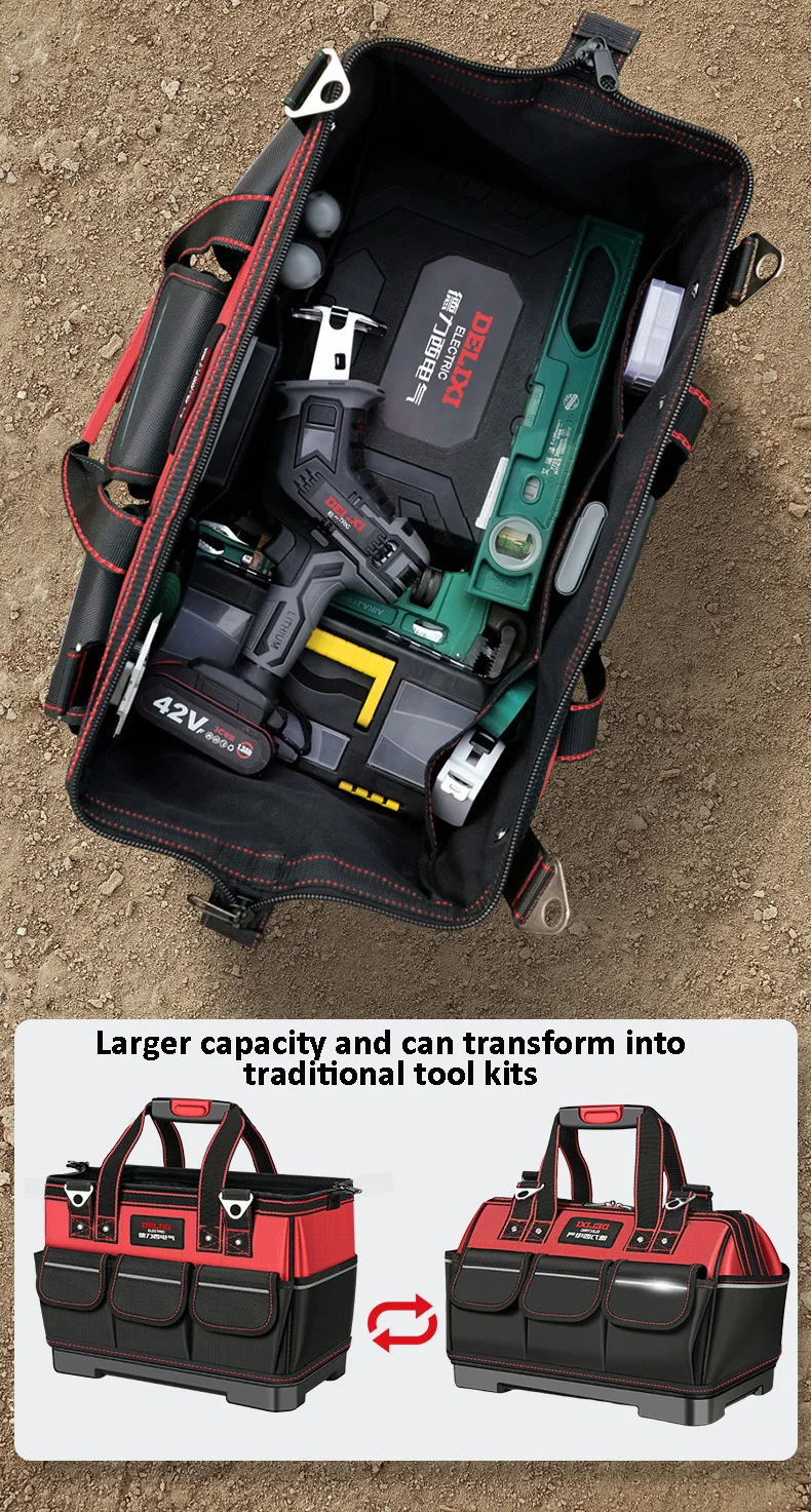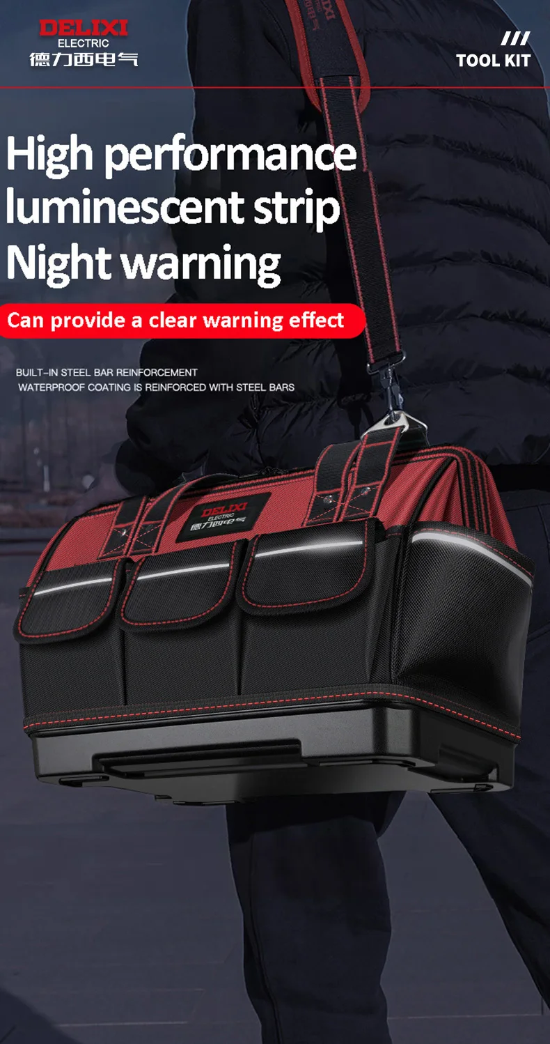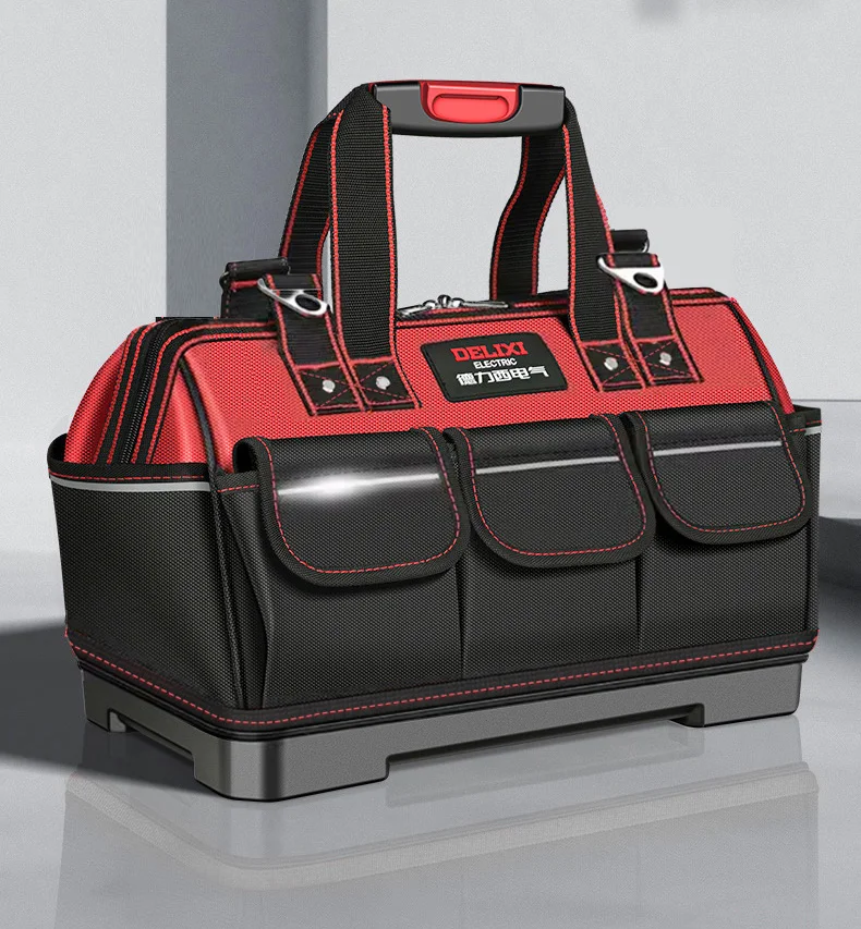 DELIXI ELECTRIC Tool Bag,Wide MouthTool Storage Bag with ABS Hard Molded Base,Suitable for Electricians,Plumbers,Homeowners.