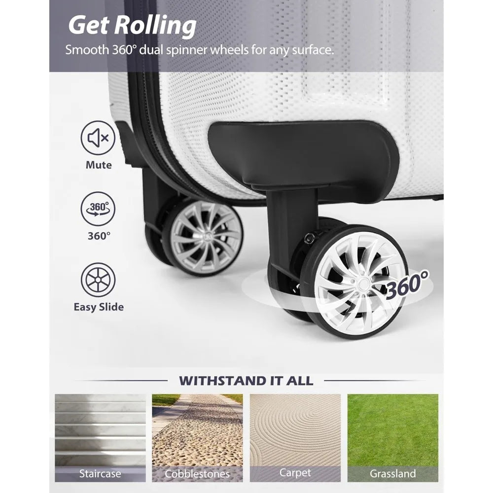 Here's a rewritten product description based on the provided information: --- This suitcase boasts a durable ABS+PC hard plastic shell that undergoes rigorous quality control tests to ensure it can handle rough use. It's designed for strength and sturdiness, and it's available individually. If you're considering purchasing multiple suitcases, the smaller one can fit inside the larger one for convenient storage. Equipped with a TSA lock, this luggage guarantees the security of your belongings. The quiet airplane spinner wheels and a sturdy 3-level 100% pure aluminum telescoping handle make it easy to navigate tight spaces, offering a more robust design than most other handles on the market. The suitcase features a fully lined interior and multi-use organizational pockets, simplifying the packing process for your clothes. It comes in three sizes: 20-inch (15.4 x 8.7 x 22.4 inches), 24-inch (17.3 x 9.8 x 26.4 inches), and 28-inch (20.5 x 11 x 30.3 inches). Please note that only the 28-inch option is expandable, offering an additional 15% of scalable space. --- This description maintains the original meaning while rephrasing the text and omitting special symbols.