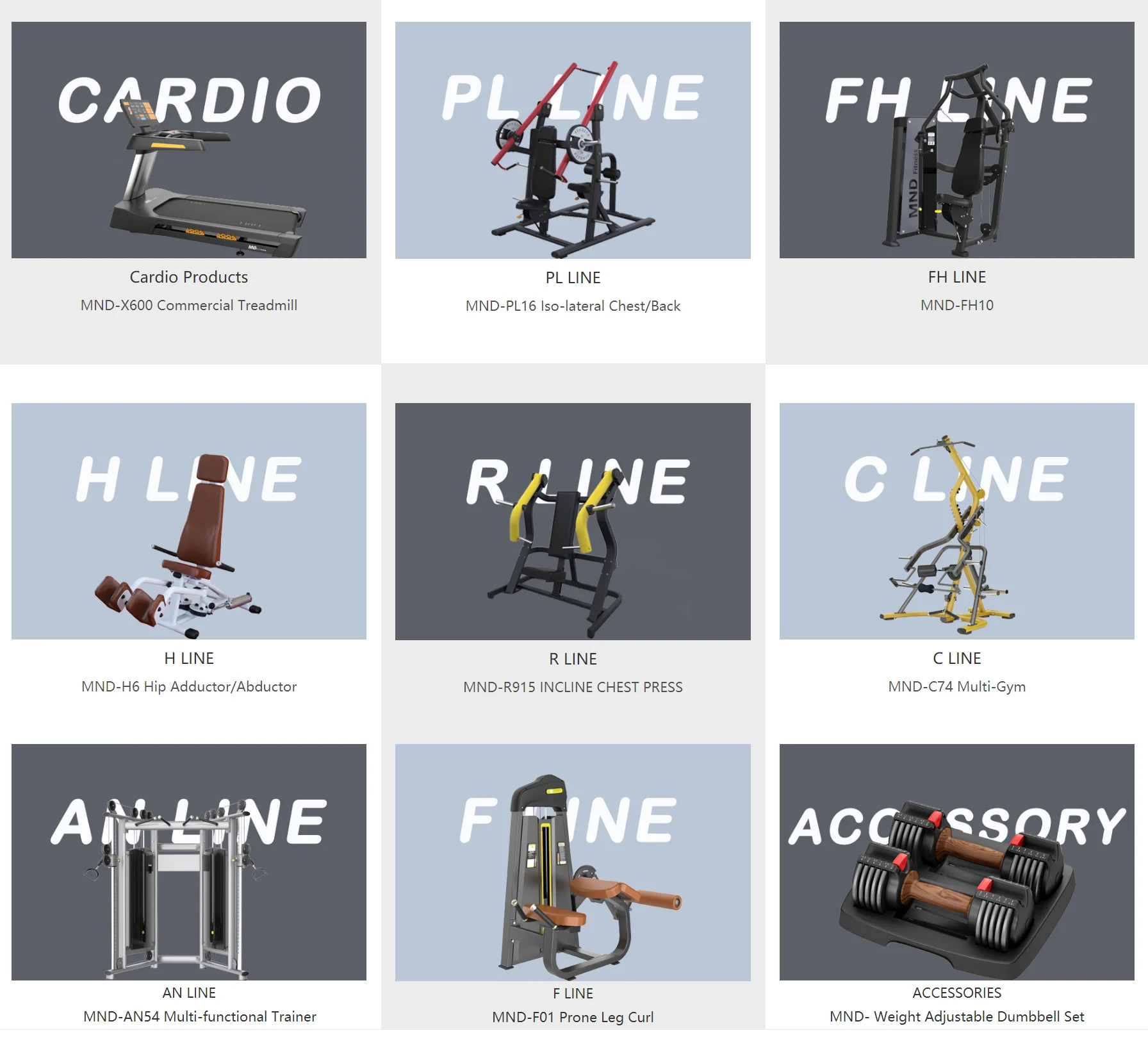Cardio machine: mostly packed in carton or plywood boxes to keep it sale; Strength machine: MND-F/FF/FH/PL/G/R these lines all packed in a plywood box, each machine packed in 1 box; Except for MND-AN line, AN machine will be packed in the whole unit and wrapped by plastic films. Accessories: mostly packed in cartons or in pallets.