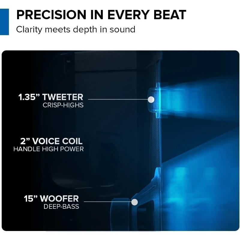 π οΈ DURABLE, LIGHTWEIGHT DESIGN WITH EASY TRANSPORT HANDLES Built for the road, this impact-resistant cabinet is lightweight yet durable. With three ergonomic handles, itβs easy to carry and transport, making it an excellent mobile PA speaker for DJs, event hosts, and stage performers.