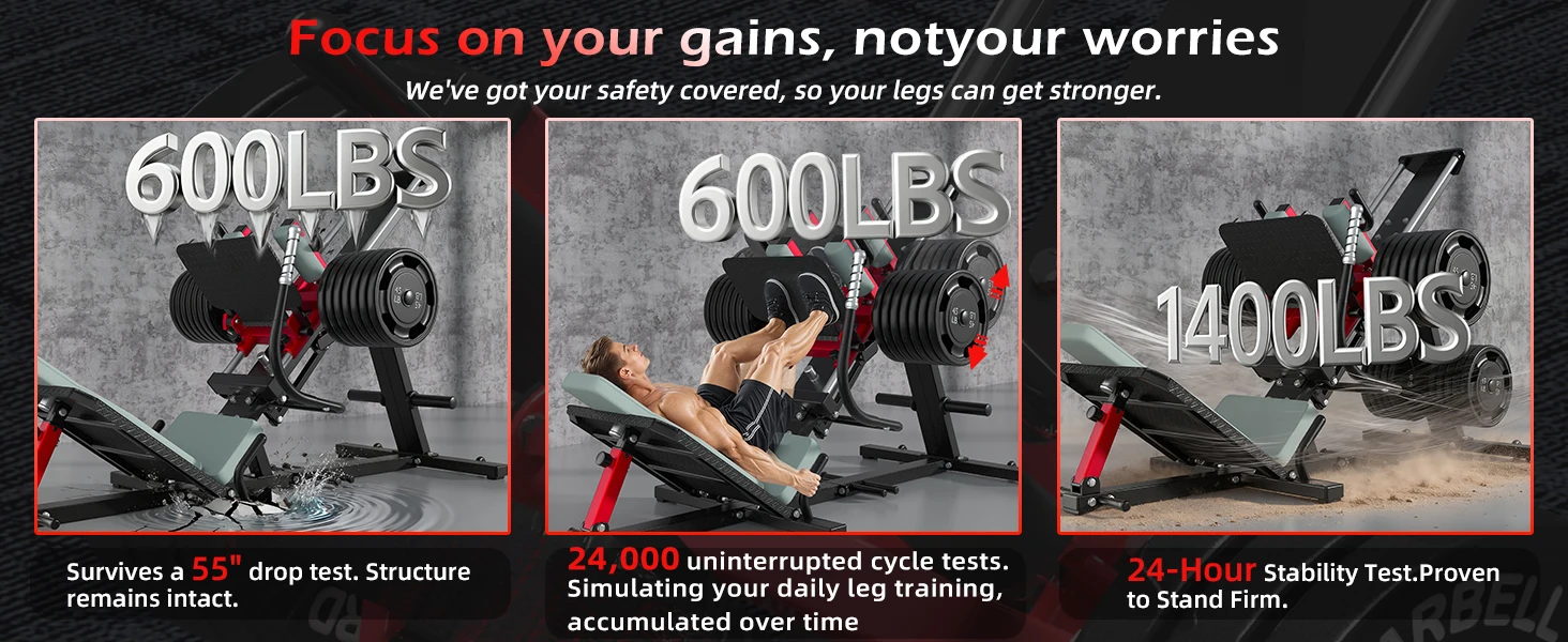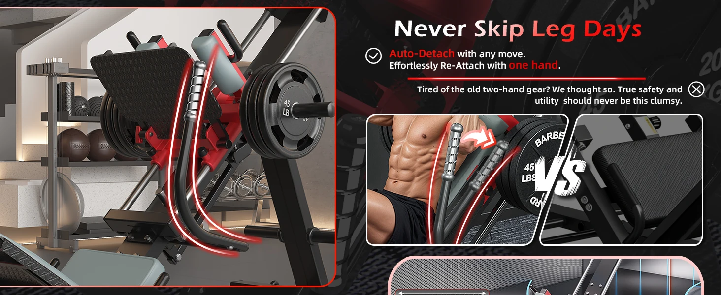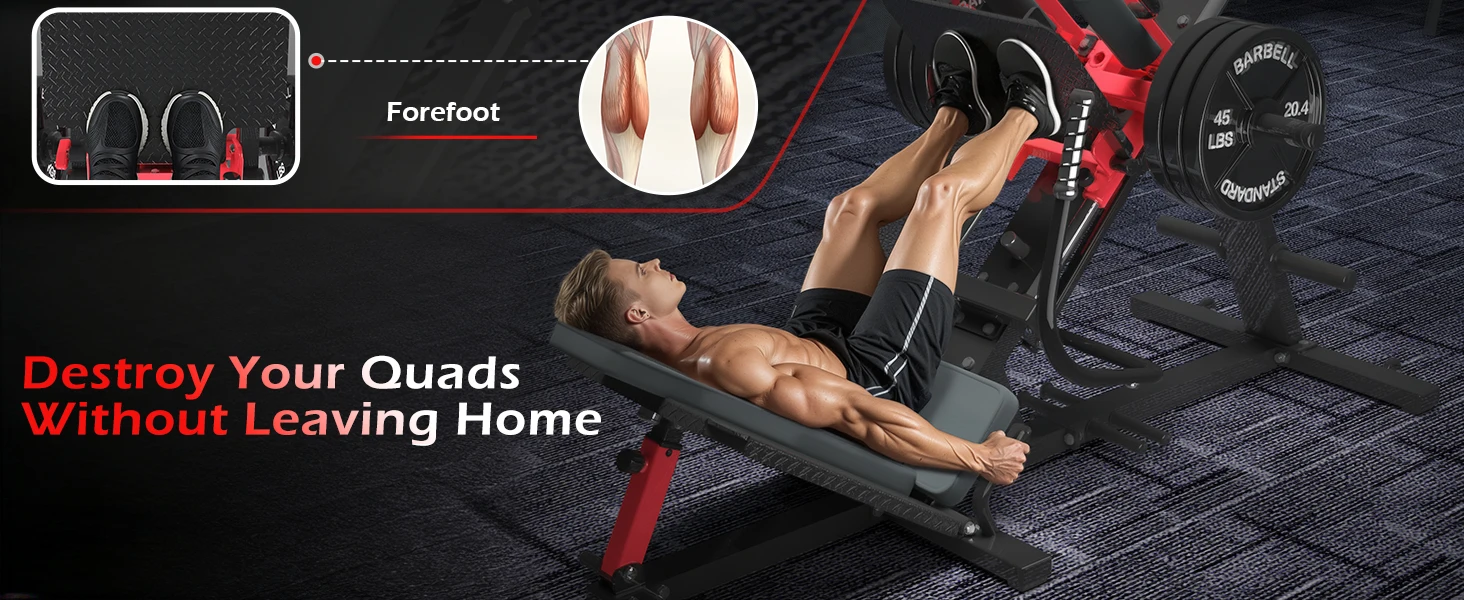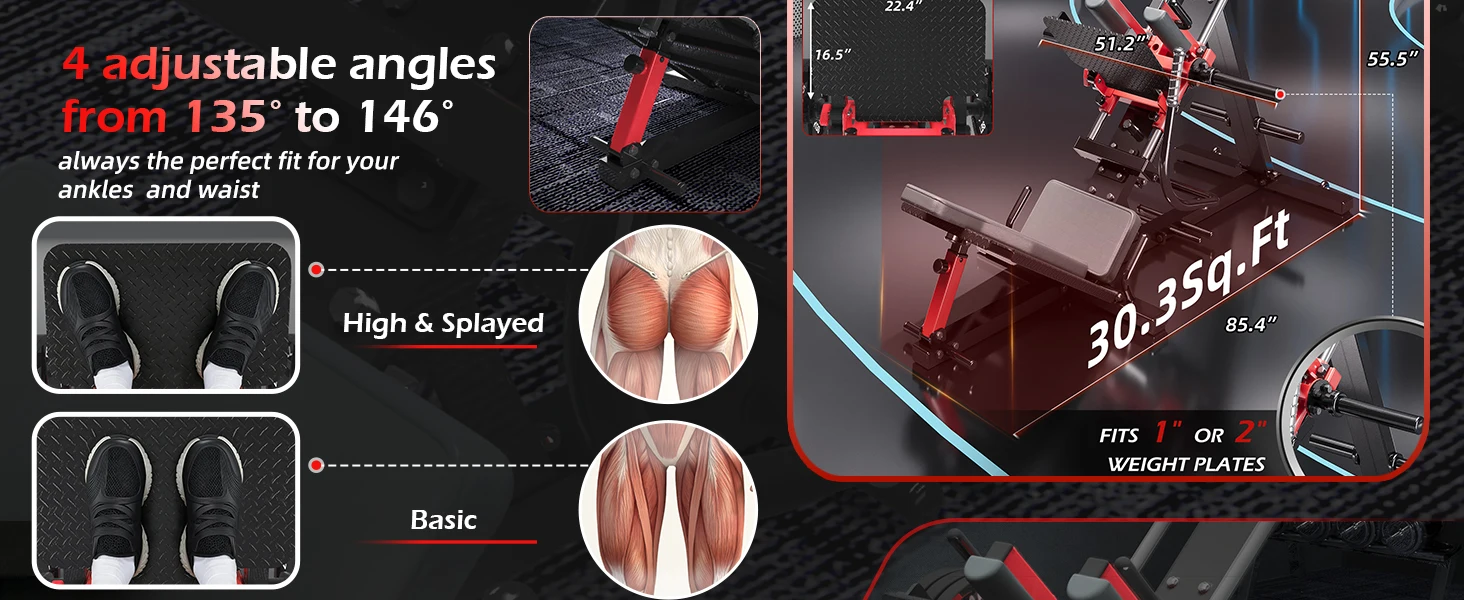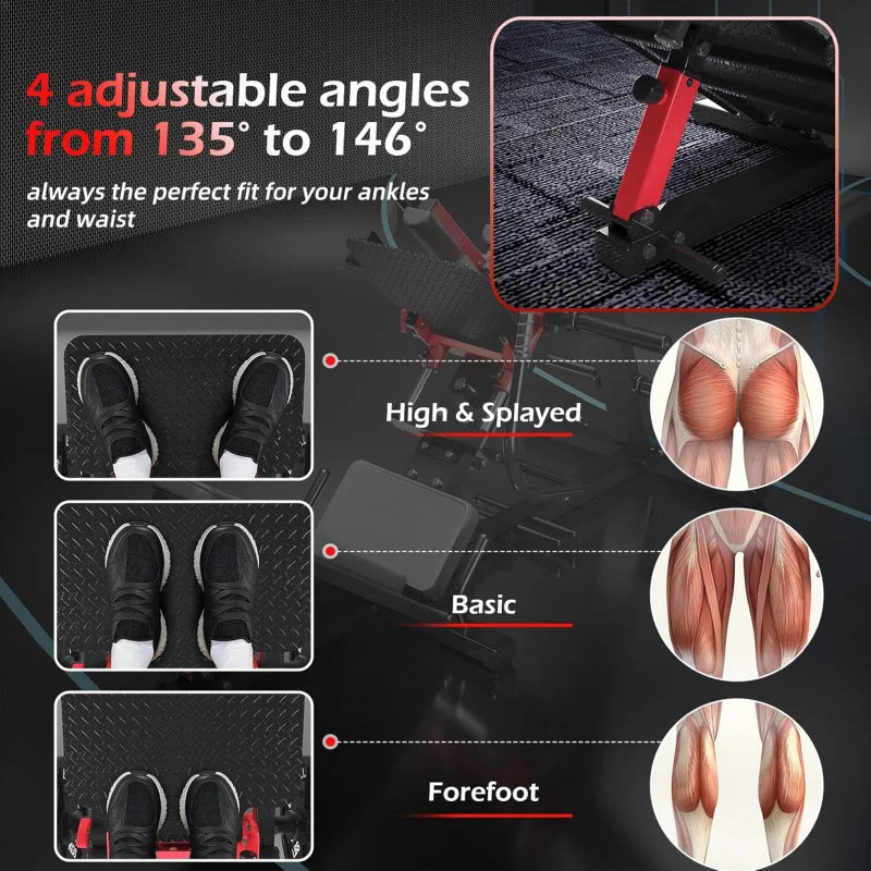 Hack Squat Leg Press Machine for Home Gym, 2 in 1 Adjustable Exercise Workout, Lower Body Equipment with Weight Storage for Home