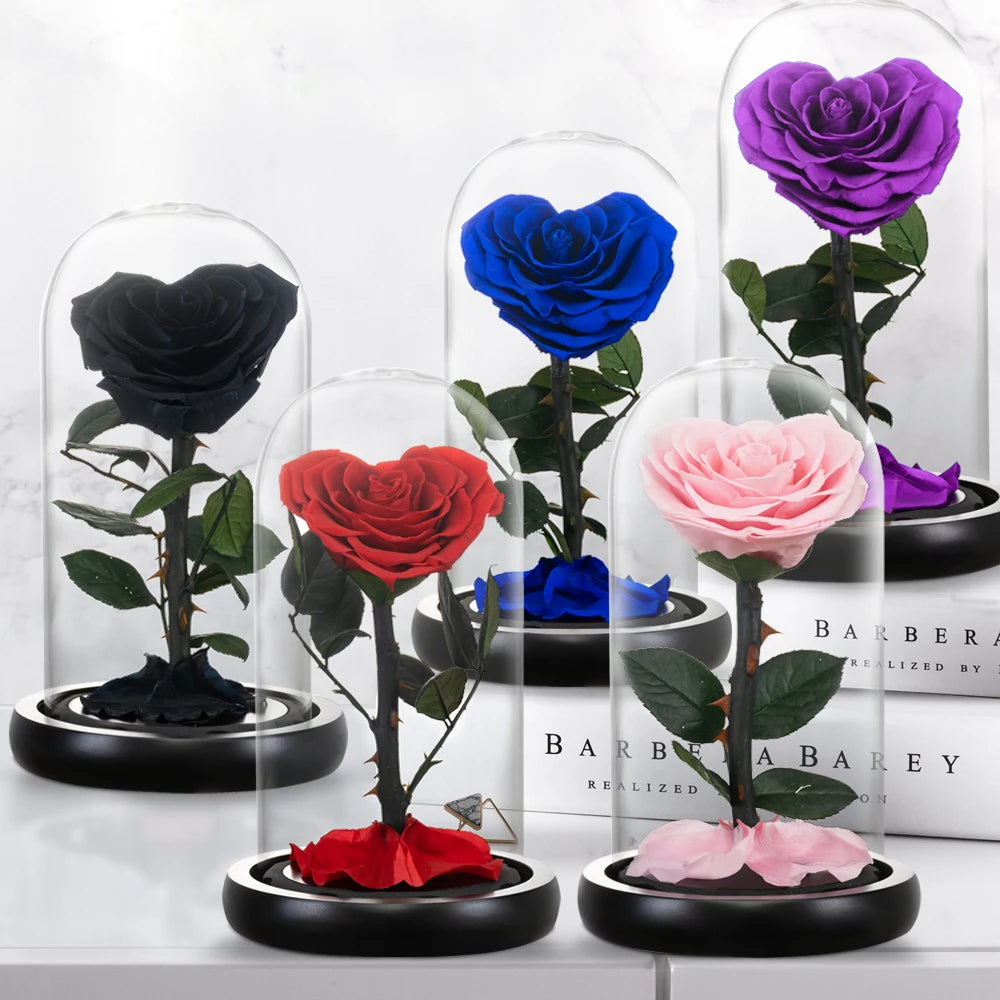 Heart Shaped Preserved Rose Beauty and The Beast Eternal Rose In Glass Dome Wedding Forever Flowers Valentines Christmas Gifts