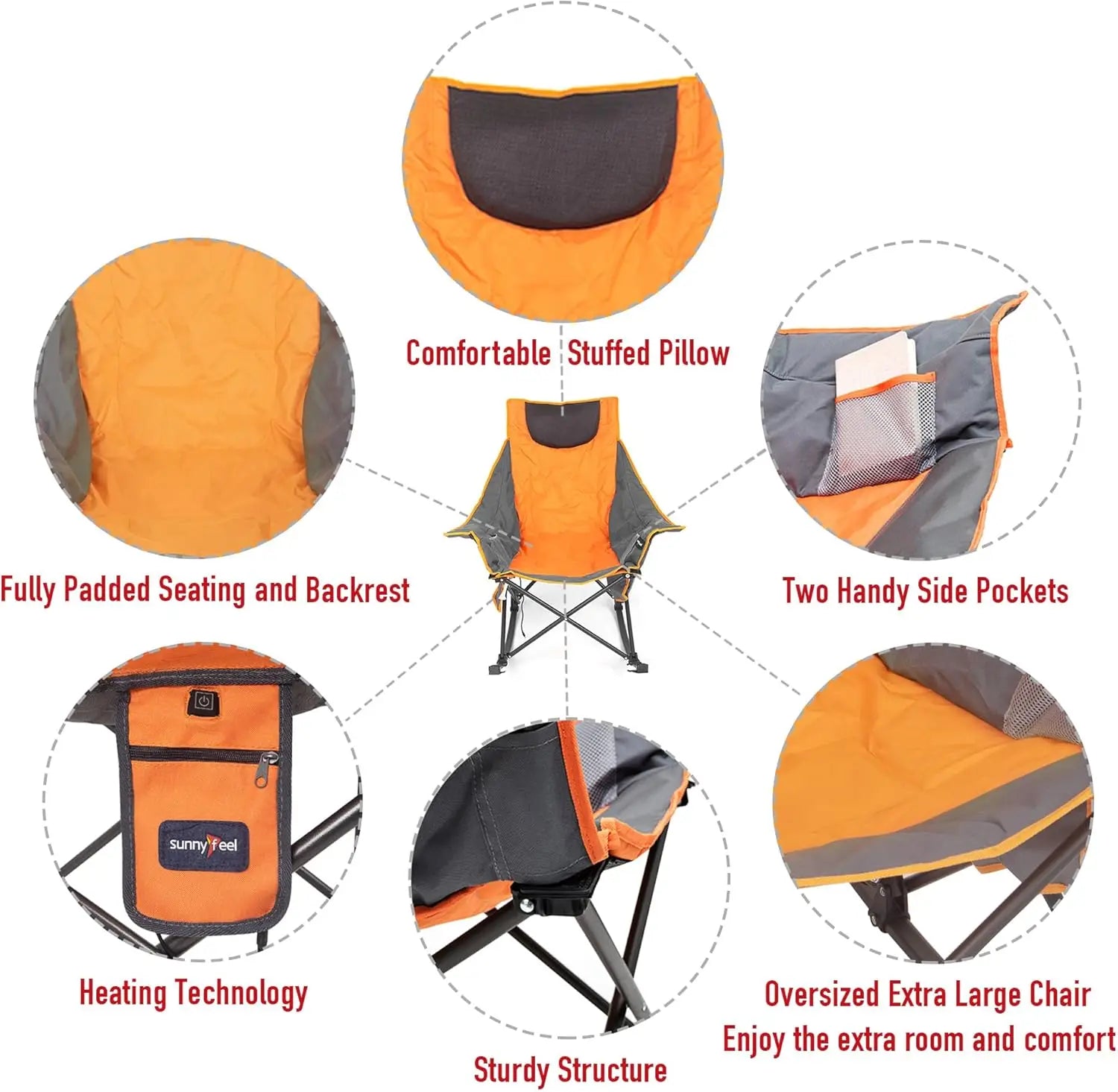 Heated Oversized Rocking Camping Chair, 500 LBS Folding Patio Recliner, Portable Outdoor Camp Rocker