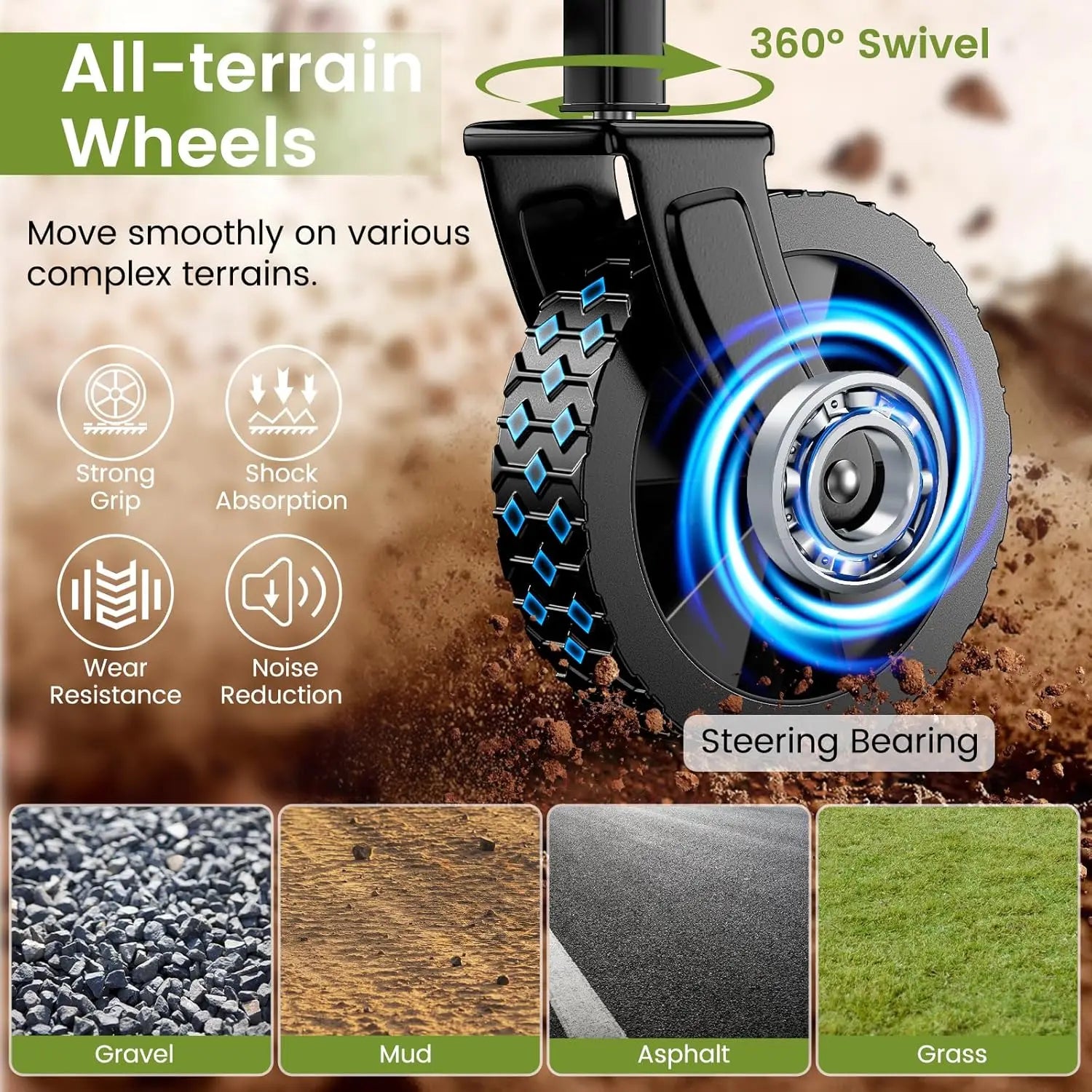 360° Wheels & Flexible Handle: Equipped with 360° rotatable wheels, this collapsible wagon ensures easy and smooth control. Whether on rough mountain trails or smooth sandy beaches, it glides effortlessly. The handle is not only telescopic but also adjustable, making pushing and pulling a breeze.