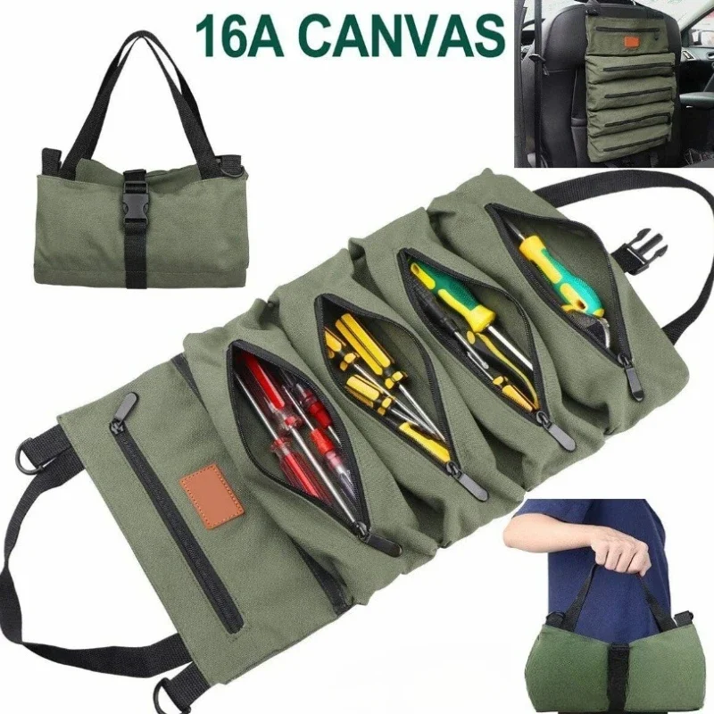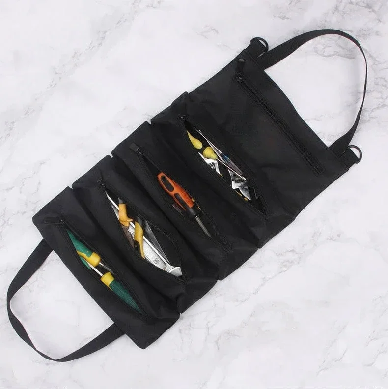 Heavy-Duty Roll-Up Tool Bag - Oxford Fabric Multi-Tool Organizer All-in-One Garage Storage for Mechanics/Electricians/Carpenters