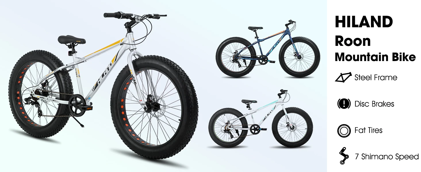 Hiland 20 Inch Kids' Bike Fat Tire Mountain Bike for Boys and Girls, Shimano 7-Speed, Dual-Disc Brake,Beach and Snow Bicycle