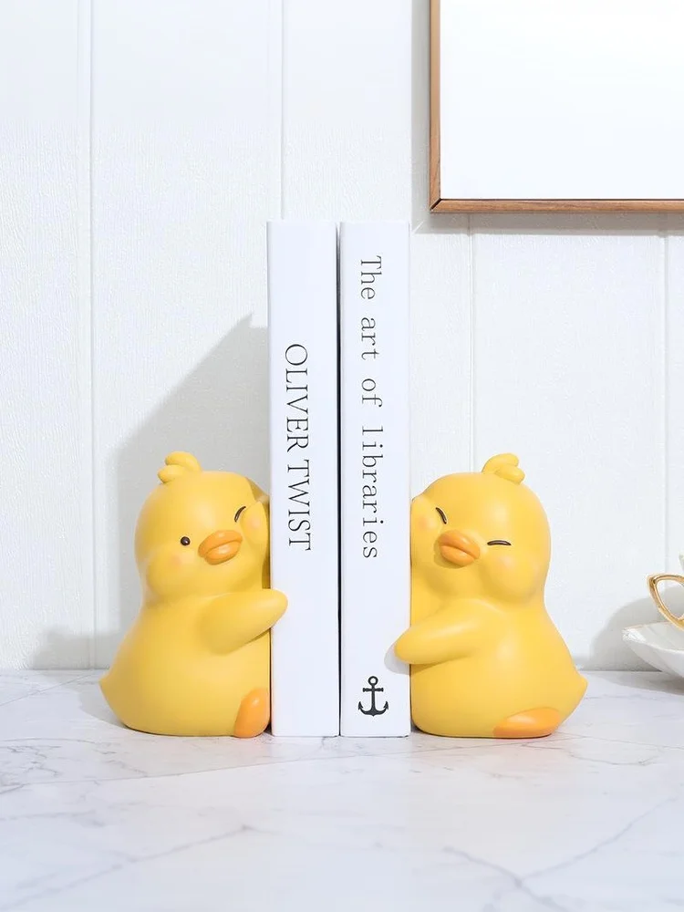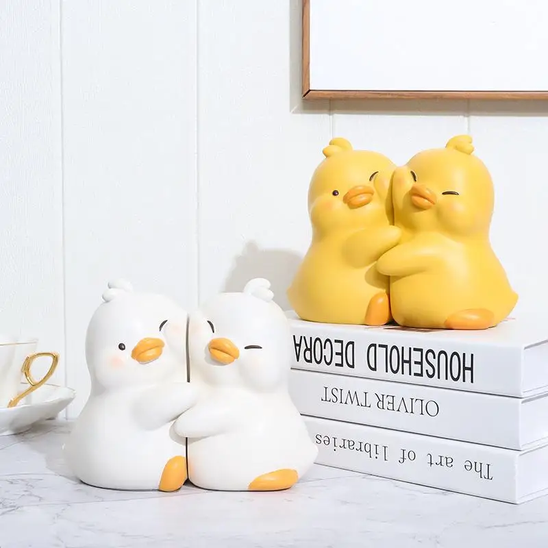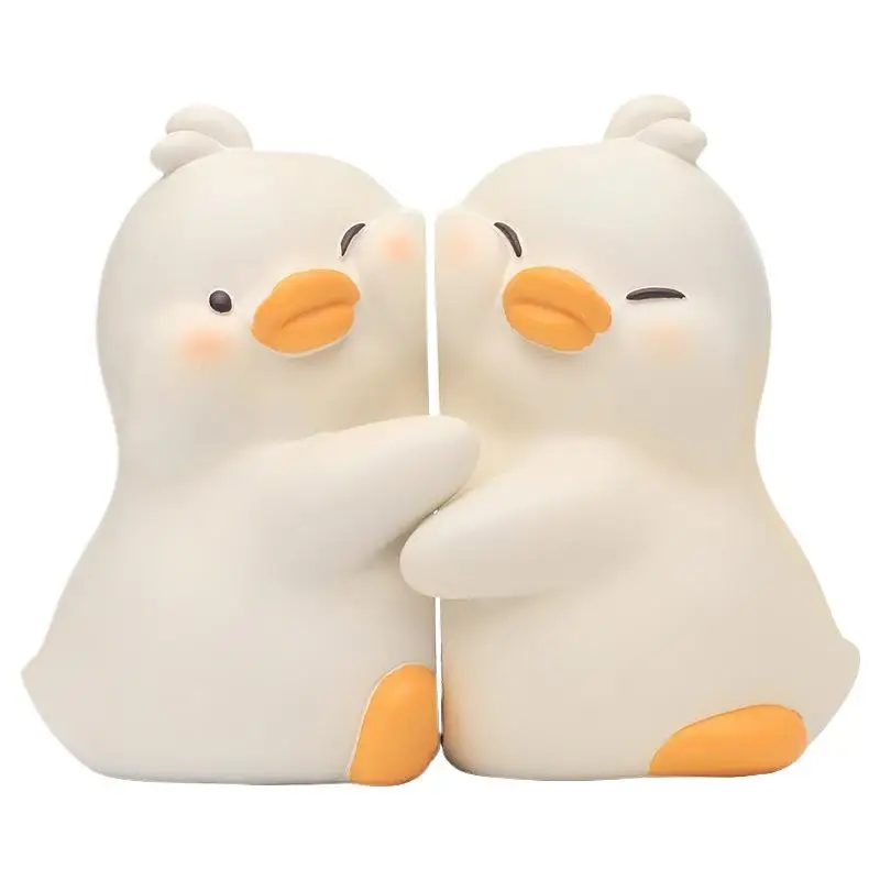 Hugging Duck Bookends - Adorable Cartoon Animal Book Stand for Desk, Decorative Shelf Organizer for Home & Office