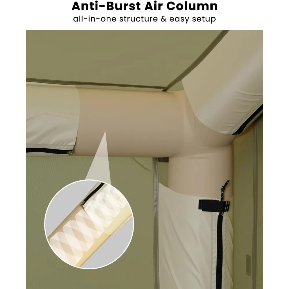 - 【5min Easy Setup Blow Up Tent with Air Pump】: Package comes with a high-efficiency air pump for quick and easy setup. No poles needed – simply inflate the tent in 5 minutes and you're ready to camp! Ideal for beginners and families.