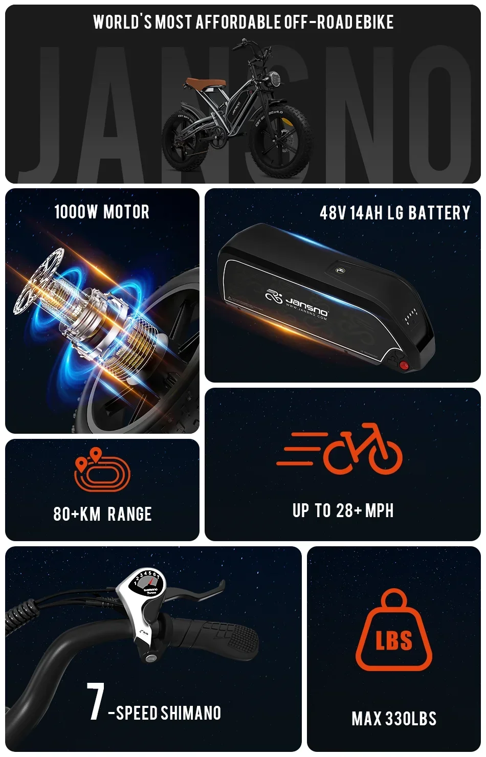 JANSNO X50 Electric Bike 750W 48V 17AH 20*4.0 Inch Fat Tire Adult Mountain Snow Retro E-Bike Full Suspension Electric Bicycle