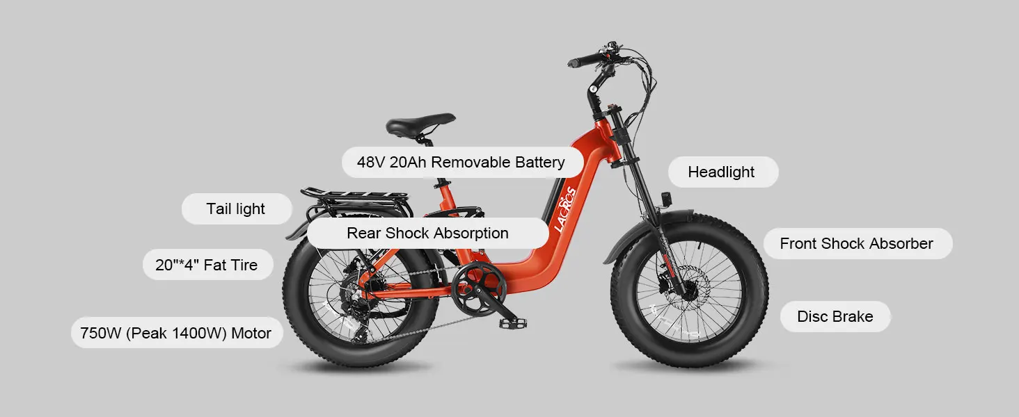 Lacros Cyclone adult E-bike,750W city ebike,48V20AH Electric Bike,20 Fat Tire E-Mountain bike