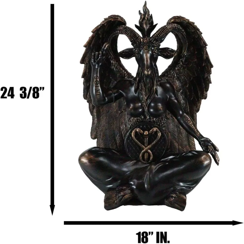 Large 24 Seated Sabbatic Goat Idol Statue - Baphomet, Samael, Lilith, Wicca Occult Illuminati Art Sculpture with Horned Design