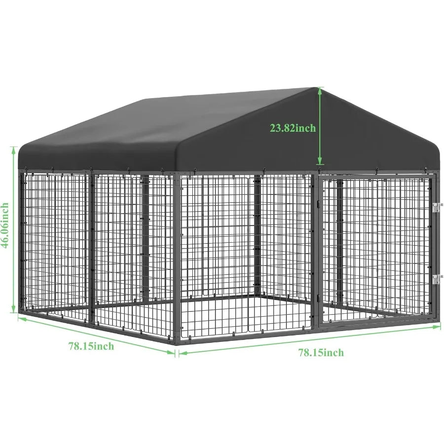 Large Outdoor Dog Enclosure Heavy Duty Dog Cage with Roof Galvanized Steel Dog Kennel Fence with Double Safety Locks 6.56ft x 6