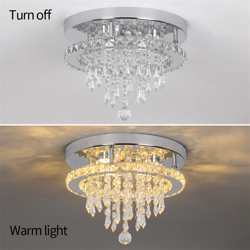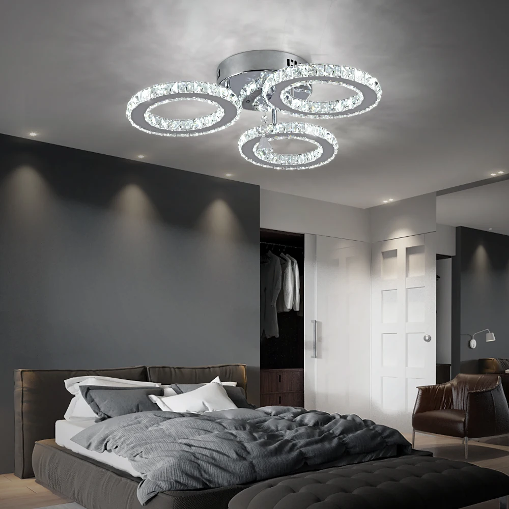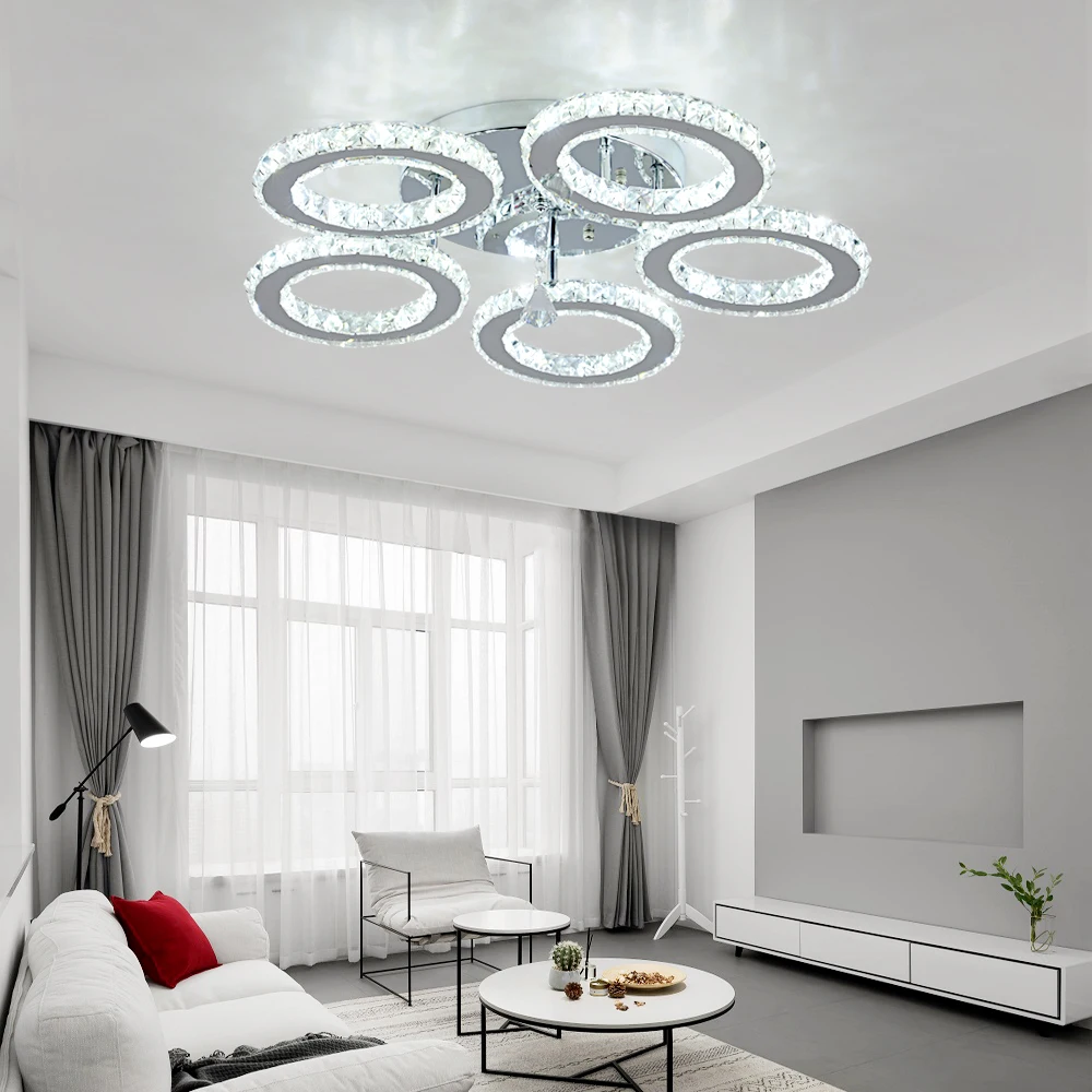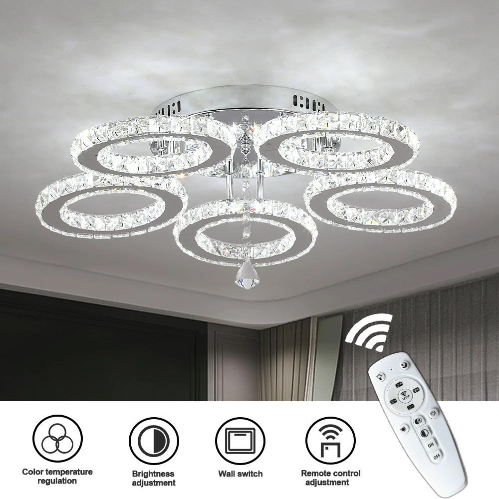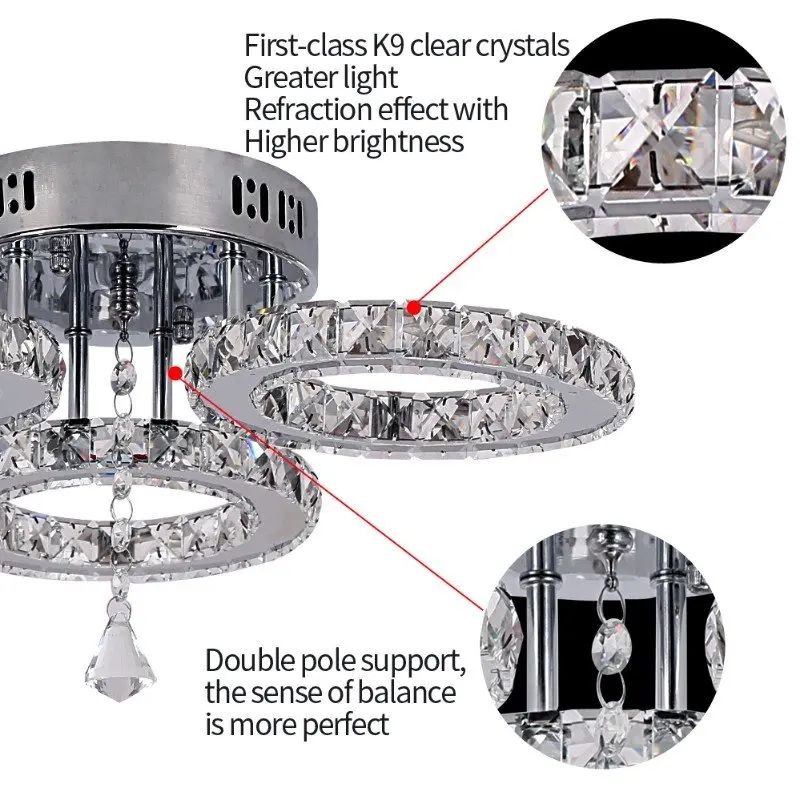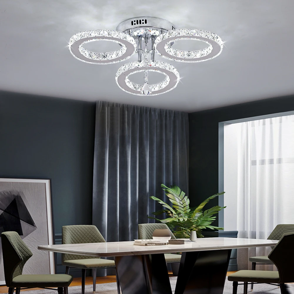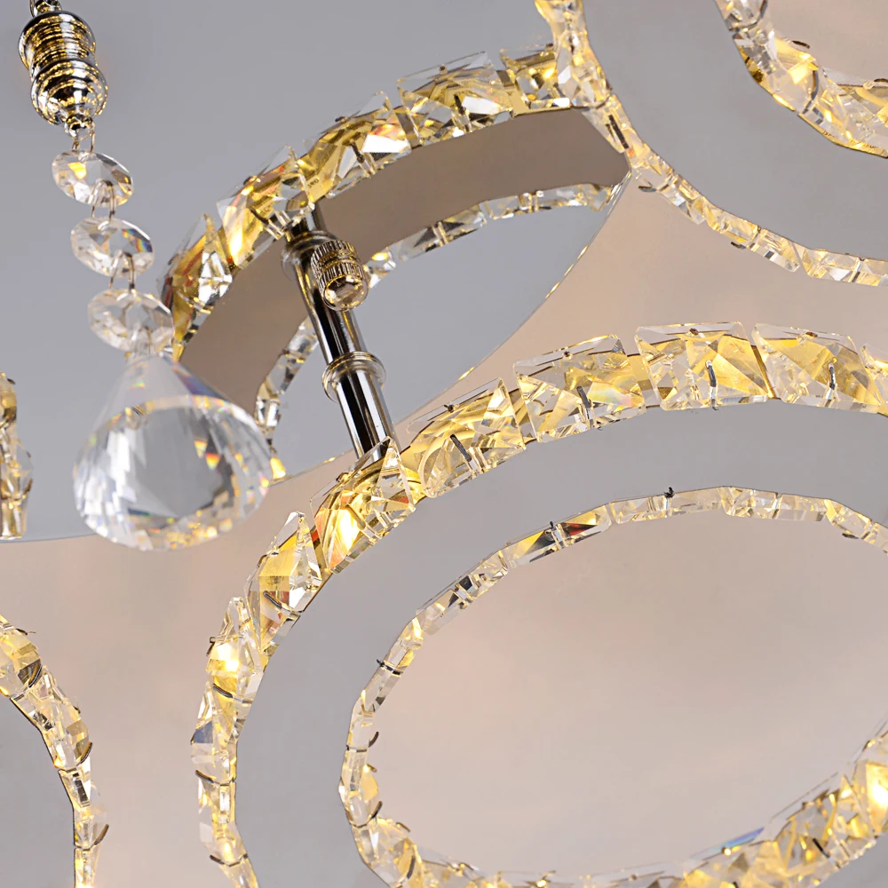 LED Lustre Chrome Crystal Ceiling Chandelier Creative Circular Restaurant Dining Room Bedroom Pendant Light Modern Home Decor