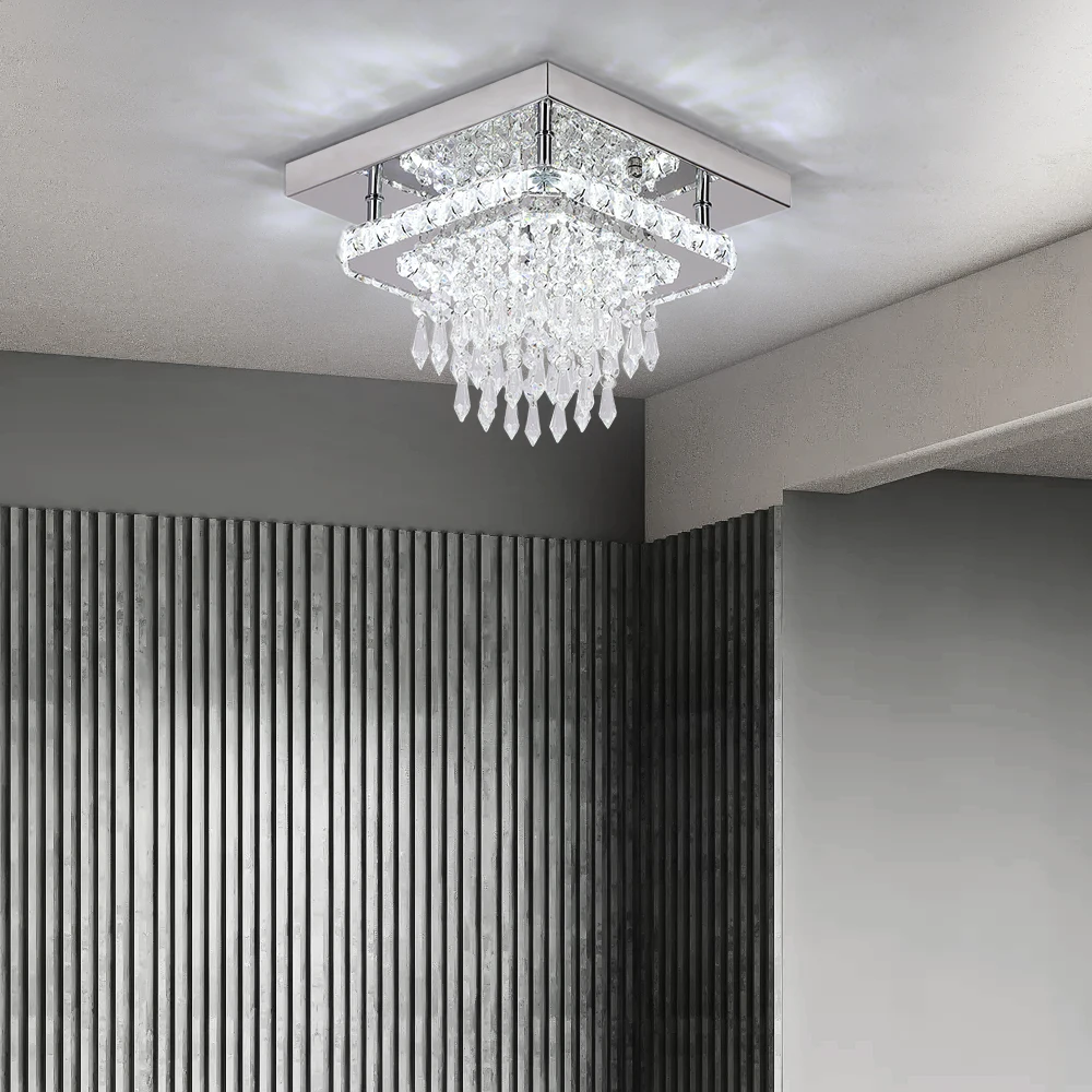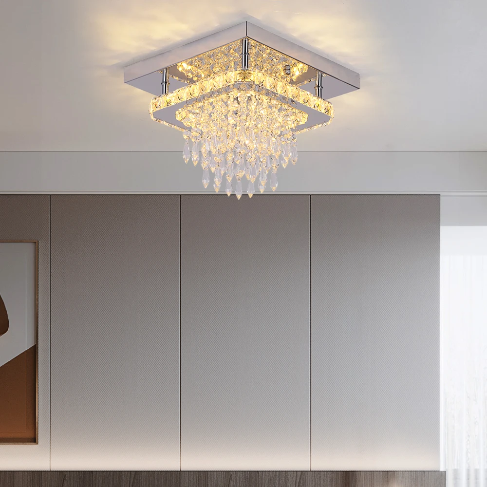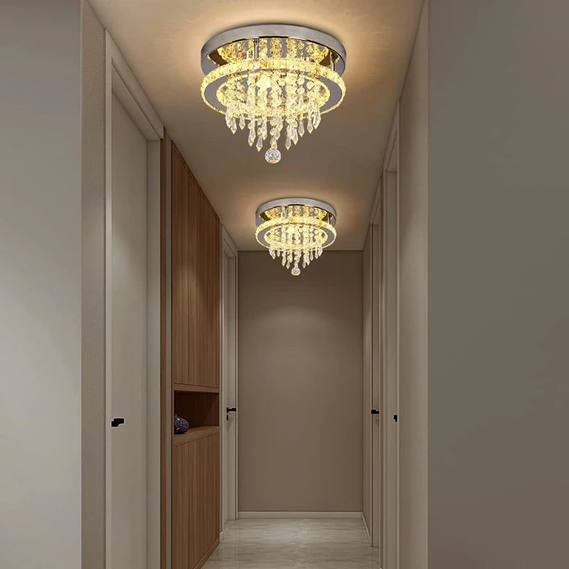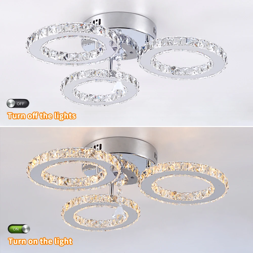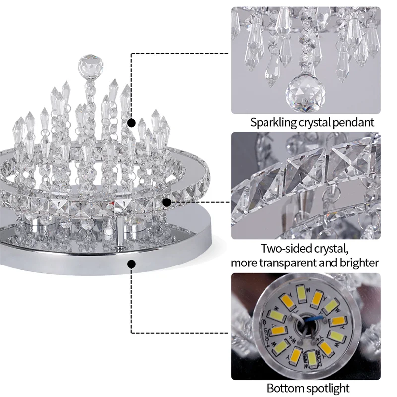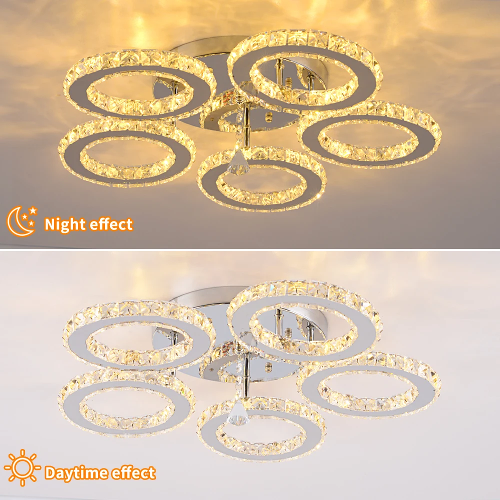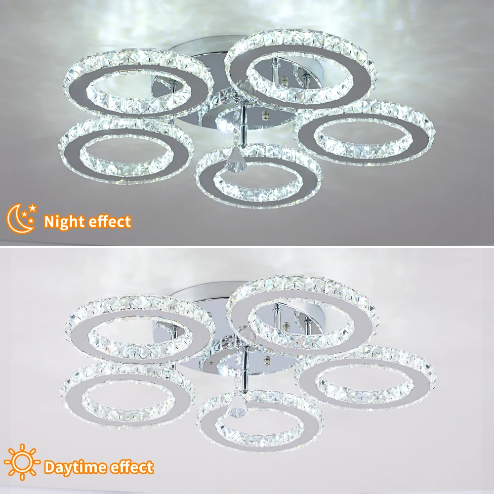 LED Lustre Chrome Crystal Ceiling Chandelier Creative Circular Restaurant Dining Room Bedroom Pendant Light Modern Home Decor