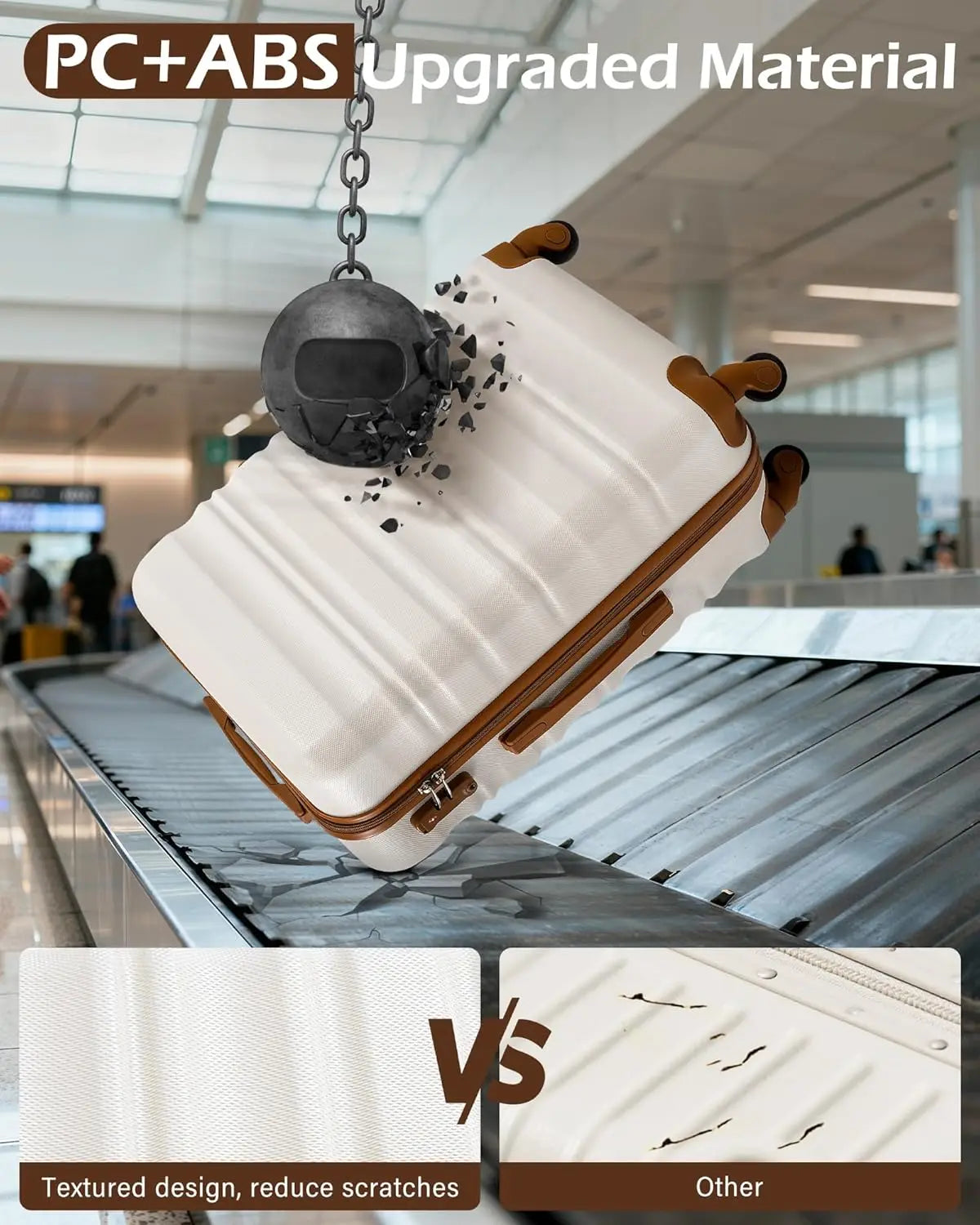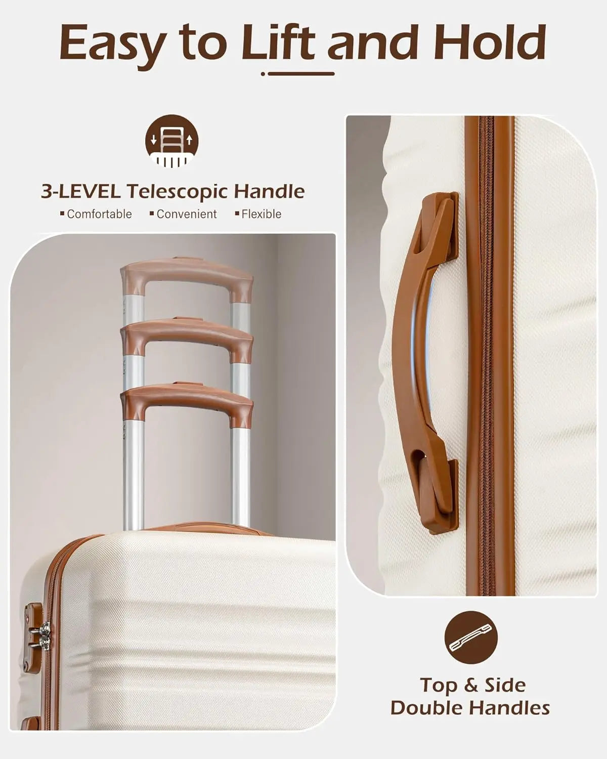 LONG VACATION 6 Piece Luggage Set Carry on Suitcase with ABS+PC hardshell, Spinner Wheels & YKK Zipper TSA Lock (BEIGE-BROWN