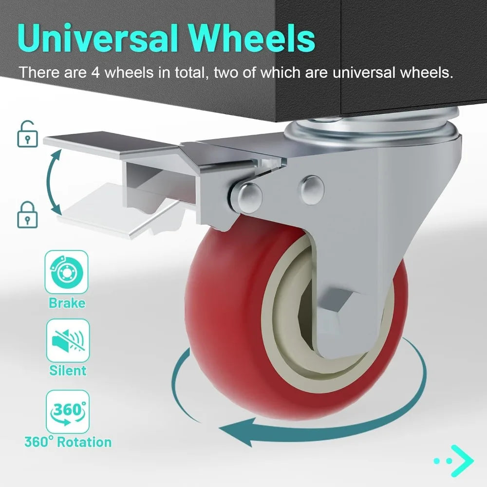 - [Secure Locking and Practical Design] Metal storage cabinet with wheels comes with a three-point metal locking system and two keys for added security to ensure your valuables are properly protected. Steel handles and magnetic doors are designed to ensure you can easily open or close the locking cabinet. Ventilation holes are designed to be more practical and prevent the metal cabinet from becoming stuffy and generating odors. This metal garage storage cabinets provides secure storage space for your garage or workshop.